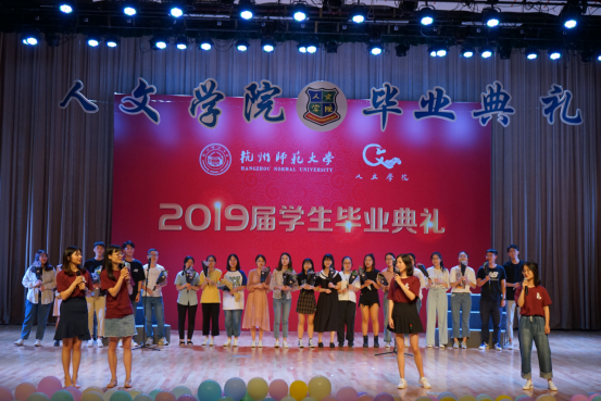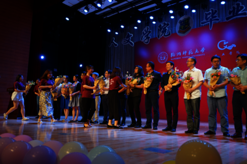 毕业典礼现场,毕业生代表向学院教师献花,感谢学院教师的辛苦培养。各毕业班班主任、辅导员老师和导师代表也发表了感言,告诉毕业生要常回学校看看。在观看完毕业视频和晚会后,典礼在共唱校歌中落下帷幕。