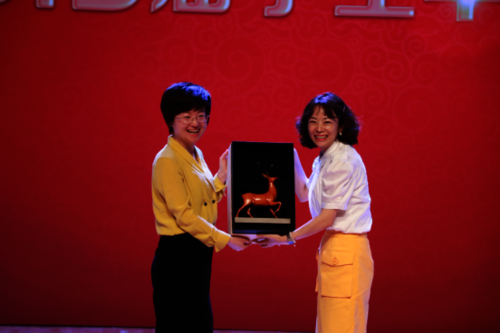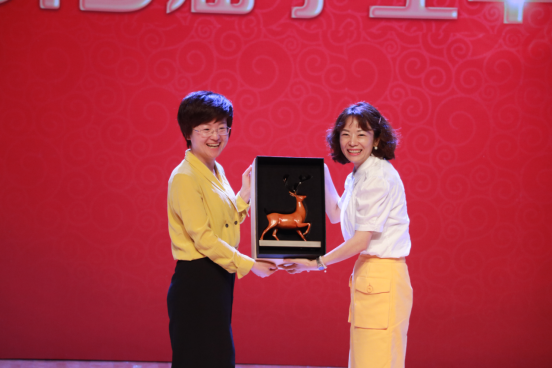 用人单位代表杭州书锦教育有限公司向小黄书 赠礼,诸英书记接礼