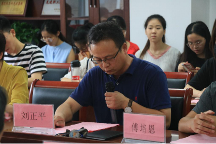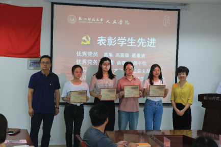 参加大会的领导和老师还有学院副院长刘正平、离退休党支部成立老师、应守岩老师、段晓平老师及相水珍老师四位老党员同志代表、学院中文系教授黄岳杰以及学院学生党支部书记傅培恩、陈晓玲。本科生第三党支部书记孔祥亮主持会议。学院党委委员、副院长刘正平代表学院党委在大会上宣读了表彰文件。