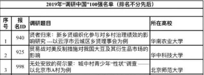 “调研中国”是由《南风窗》杂志社于2005年创办的公益项目,通过提供资金和专业训练,支持在校大学生进行田野调查和社会实践,活动旨在为关注当下中国社会各方面状况并有兴趣对其进行调查、研究的大学生团队提供必要的资金支持和实操合作,以促进大学生对社会发展现实的深入接触和思考。迄今为止,全国已有近700所高校、10000多支团队参加了“调研中国”,吸引了各类志同道合的机构和组织参加。在合作伙伴的支持下,项目涵盖大陆与港澳台高校,已经成长为中国大学校园中最具影响力的田野调查支持平台,影响了100多万大学生群体。