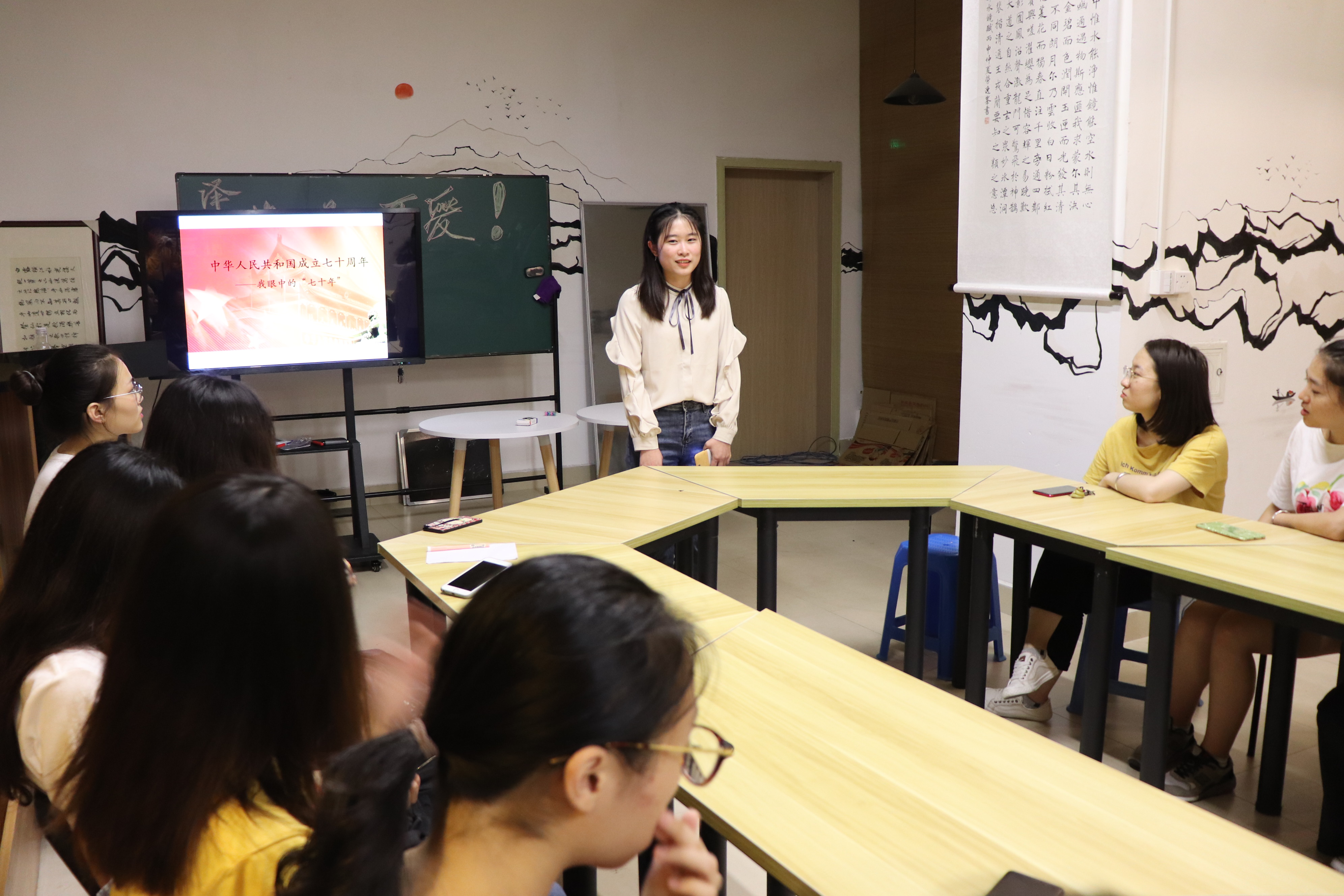 9月21日晚,中文172班“礼赞新中国·奋进新时代——庆祝新中国成立70周年主题班会”在小黄书 泽地书院顺利举行。此次班会由班长陈渊、团支书吴惠悦共同策划,由团支书吴惠悦负责主持,全体团支部成员共同参与,回顾峥嵘岁月,回首入团历程,展望中华未来,砥砺担当使命。