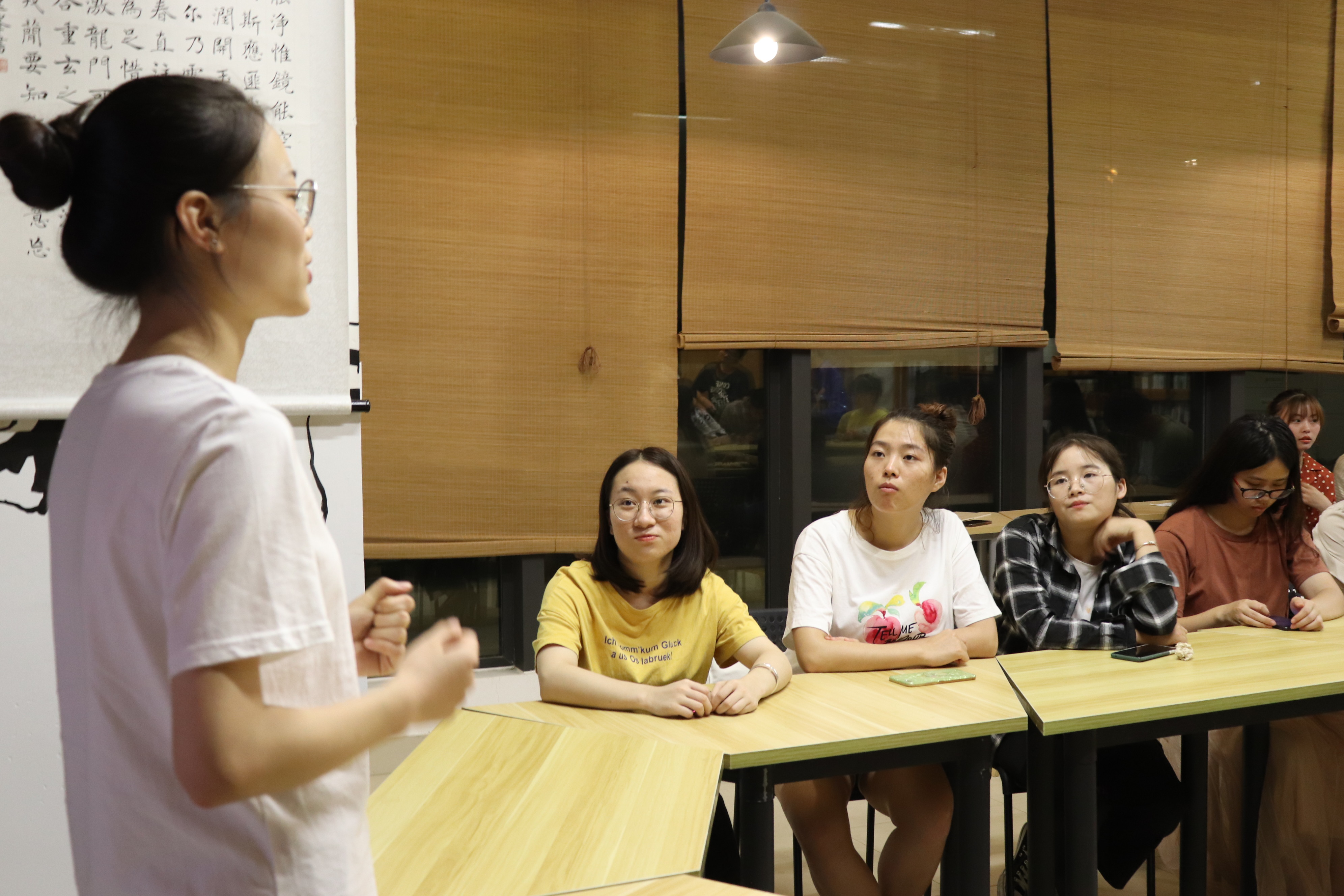 在观影之后,吴惠悦、任令如、雷雨欣三位同学结合自己暑期社会实践的经历,分享了在做建国七十周年家乡变化的考察时的感受,和大家分享了浙江仙居、浙江丽水的杨梅业、住房条件和经济发展的变化。伟大的七十年,给人民生活的方方面面带来了巨变,百姓的衣食住行随着社会经济的高速发展发生了翻天覆地的变化。听着三位同学的分享,同学们深刻地感受到了共和国的成长、民生的改善。