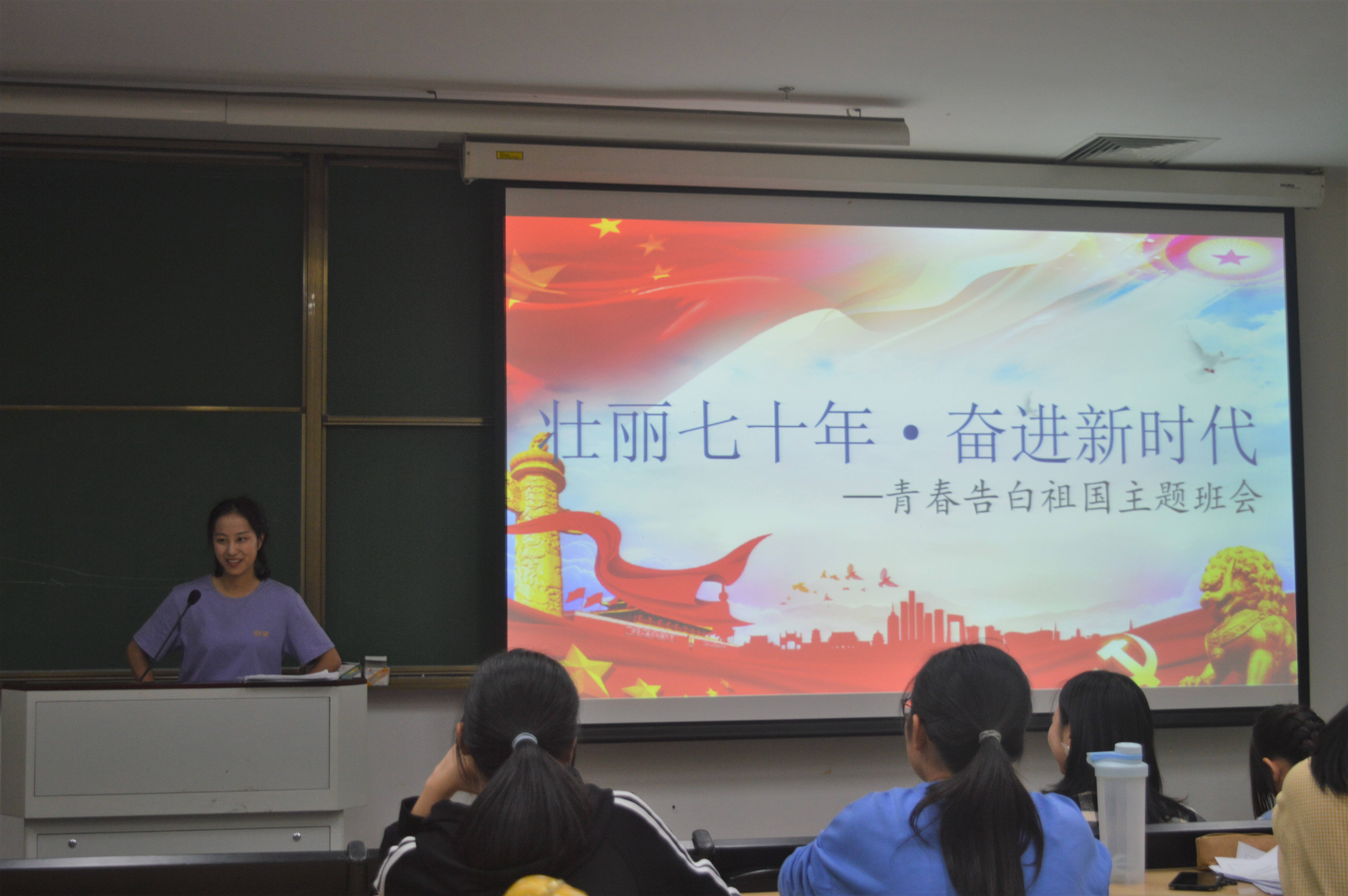 为更好的迎接祖国70华诞的到来,营造隆重热烈的庆祝氛围,9月22日晚18点,汉教181主题班会“壮丽七十年·奋进新时代——青春告白祖国”在恕园13号楼301举行。应到36人,实到36人。
