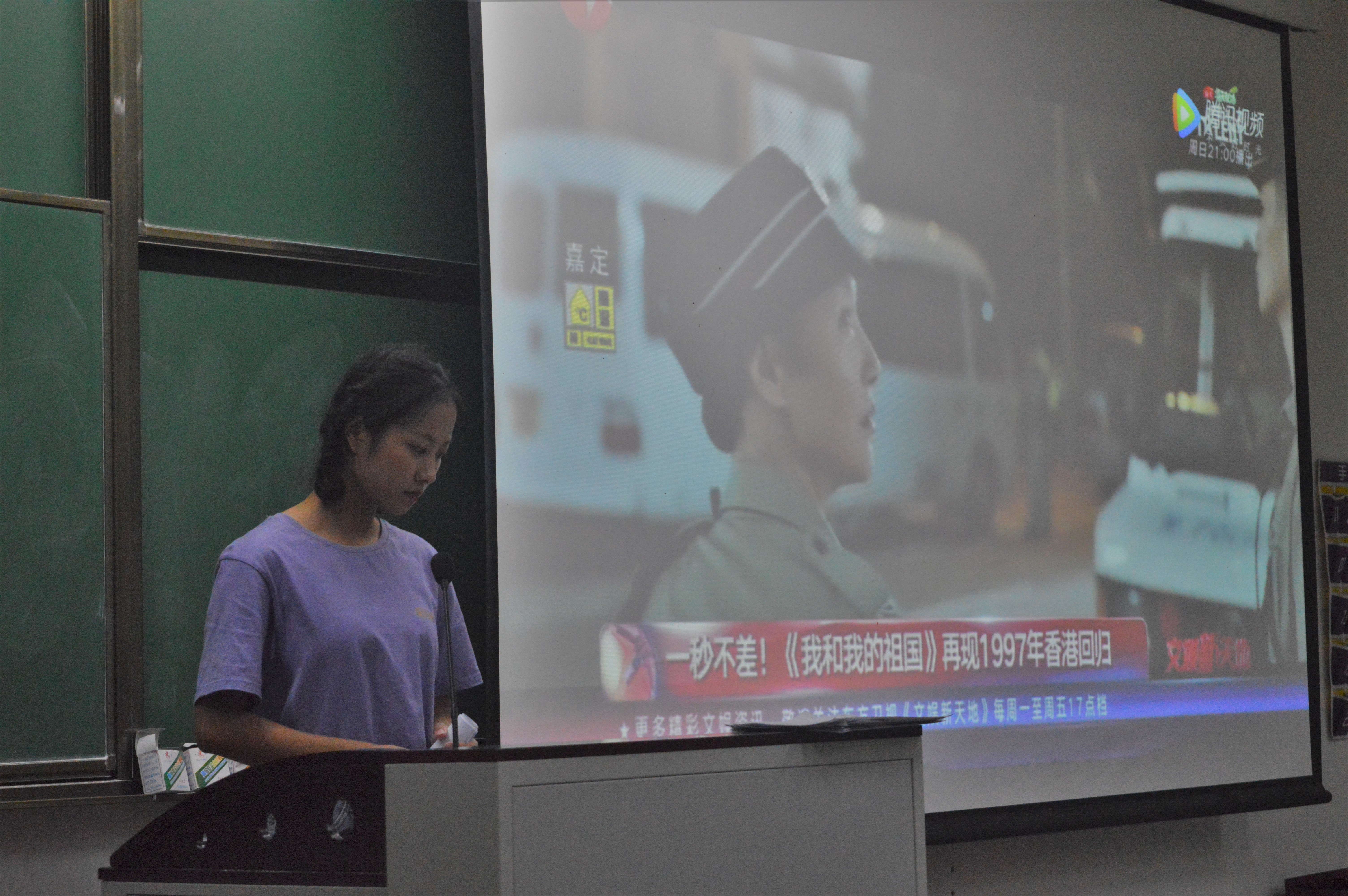 首先,主持人汉教181团支书徐怡情对班会的背景、目的和意义做了简要的说明,并告知流程。紧接着,在《我和我的祖国》主题MV的背景下,徐嘉蔚和殷湘云同学给大家带来了精彩的唱跳表演,现场气氛迅速升温。“你画我猜”游戏的开展更是将全场的气氛推向了高潮,“支付宝、丝绸之路、国庆阅兵、抗美援朝、东方明珠、共享单车”等等体现中国70年来成就的词语,被两位男生一一生动描绘,现场成员踊跃参与,惊呼连连。