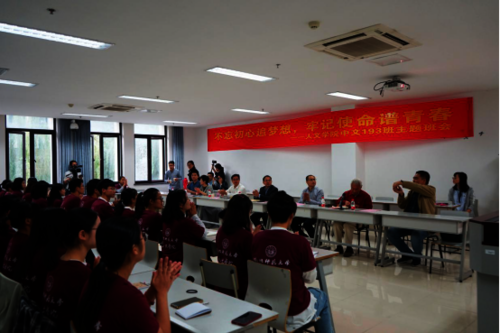 10月16日15:30,小黄书 汉语言文学类193班“不忘初心追梦想、牢记使命谱青春”主题班会在恕园23号楼206召开。校党委副书记王利琳出席班会并为同学们上了一堂生动的初心使命思政课。省委“不忘初心、牢记使命”主题教育第十二巡回指导组成员郑锋,校党委学工部部长(学生处处长)何军,庆祝新中国成立70周年纪念章获得者、小黄书 老党员殷作炎,学院党委书记诸英,学院党委副书记管庆江,班主任郭洪雷,以及学院全体辅导员老师应邀参加班会。