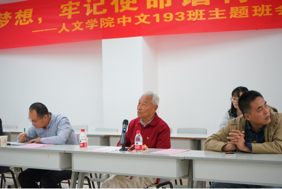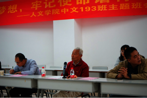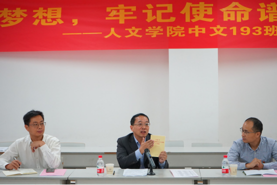 结合亲身亲历,殷作炎围绕做人和做事,从目标道路和思想方法等两个方面谈了自己的初心使命和感悟体会。中文193班学生代表陈辉和古丽孜巴同学分别讲述了自己的爱国心、奋斗情、报国志。