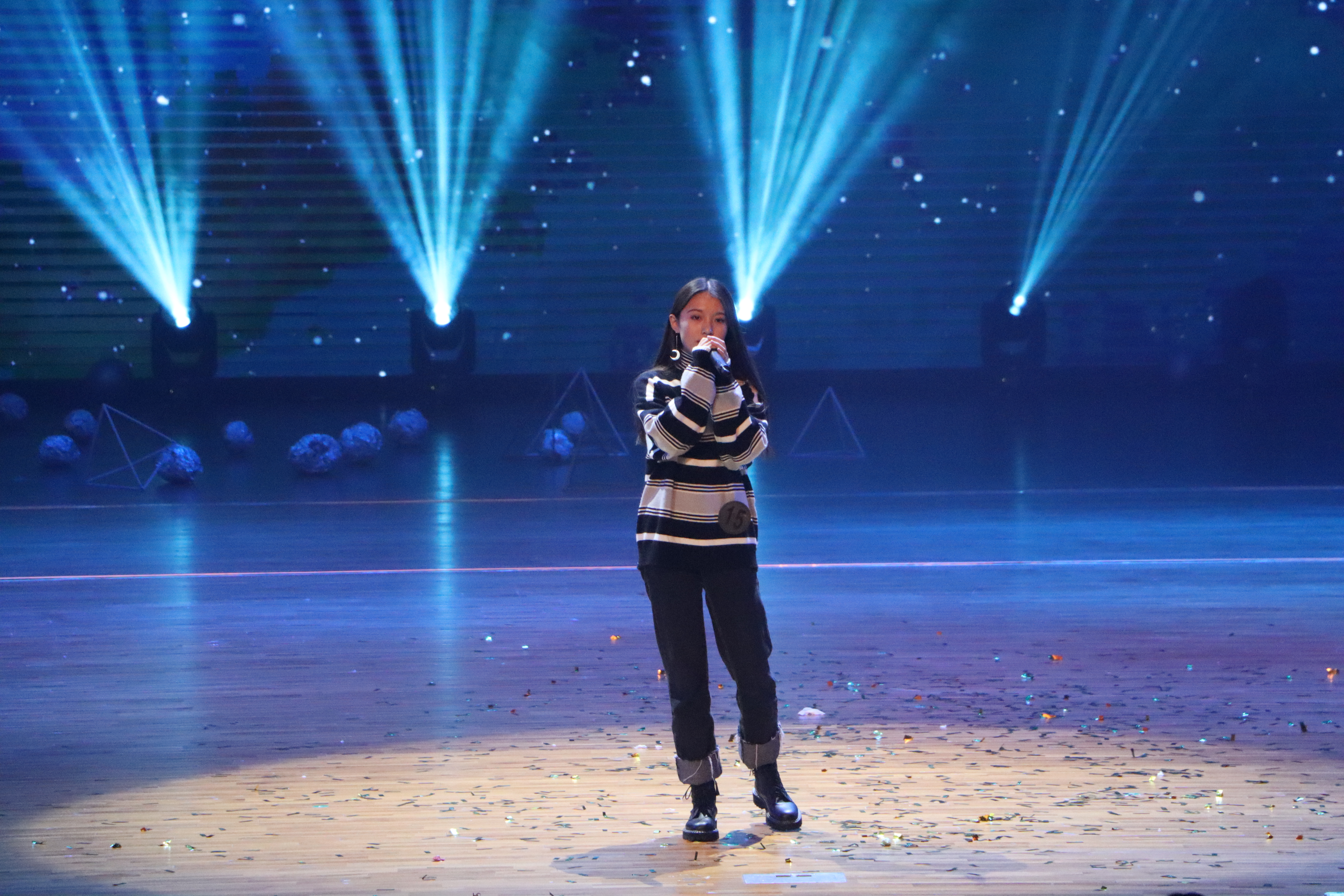 在现场热烈的欢呼声和掌声中,第三轮“谁与争锋”拉开了帷幕,十强选手完整演唱自选曲目,以动听的歌声和酷炫的舞台点燃了全场的激情。最终,经过五位评审的专业评判和数位大众评审的投票,决出了本次大赛的冠亚季军。其中,梅苗苗和苏可欣同学组成的“没良心”组合获得季军,石宇轩同学获得亚军,朱琳同学摘得了本次大赛的桂冠。而钭宁同学通过线上微信投票和现场大众评审们的投票成为本次大赛“最佳人气奖”的得主。