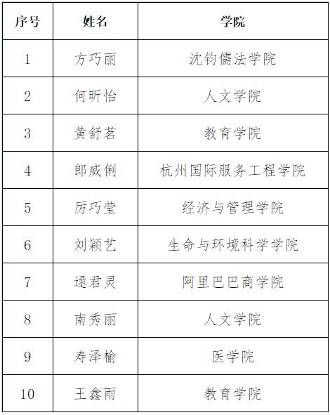 附:杭州师范大学2019-2020学年“自强之星”获得者名单(按照姓氏首字母排序)