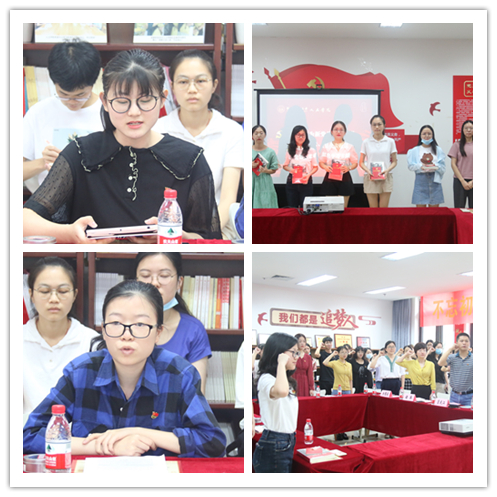 会上还组织了老党员们为新党员代表佩戴党徽,赠送党章与学习书籍,党委副书记管庆江带领与会党员重温誓言。与会的学生党员们纷纷表示,将继续锐意进取,开拓创新,以优异成绩和优良政治品德迎接建党100周年。