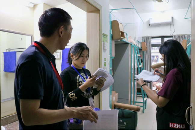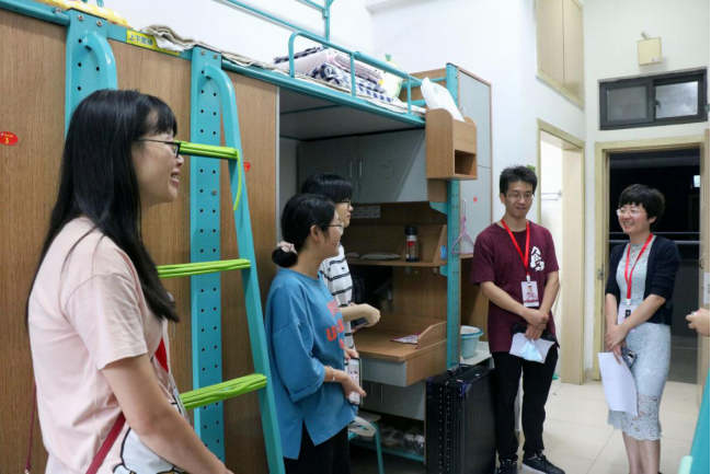 9月15日下午,学院领导、系主任和全体班主任、辅导员、新生学长等走访了2020级新生寝室,与新生进行亲切交流。