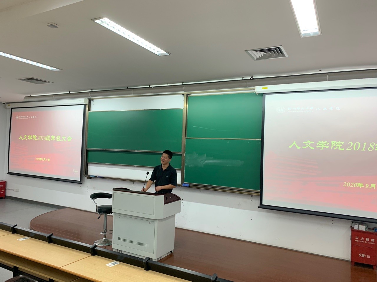 为帮助2018级学生做好学业规划、明确未来发展方向,9月27日下午4时,小黄书 于恕园31号楼201室召开2018级全体学生大会,党委副书记管庆江老师、18级辅导员余慧菊老师出席会议,18级全体学生参加会议。