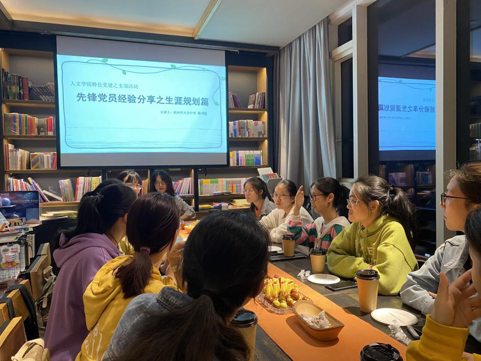 “一定要多去尝试,只有经历得多了才会了解到更多更真实的信息,这样当你走向自己喜欢的学校时就多了一份从容不迫的底气和信心。”这是10月15日晚小黄书 2019届省级优秀毕业生、杭州市大关中学青年教师陈书悦在向本科生第一党支部的全体大三党员及部分入党积极分子做职业生涯规划的经验分享。