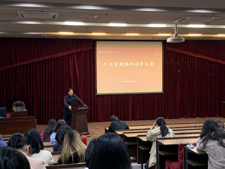 10月28日下午4时,小黄书 2018级学生体测动员大会在恕园23号楼弘毅厅举行,来自汉教181、人教181、历史181和中文181班的130位参加2020年浙江省高校学生体质健康状况抽测的学生参加会议,院党委副书记管庆江、公体部主任黄忠兴、学院辅导员余慧菊、陈晓玲等出席会议。