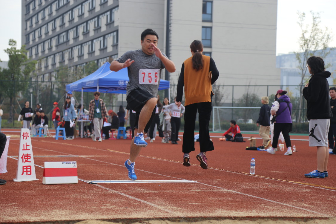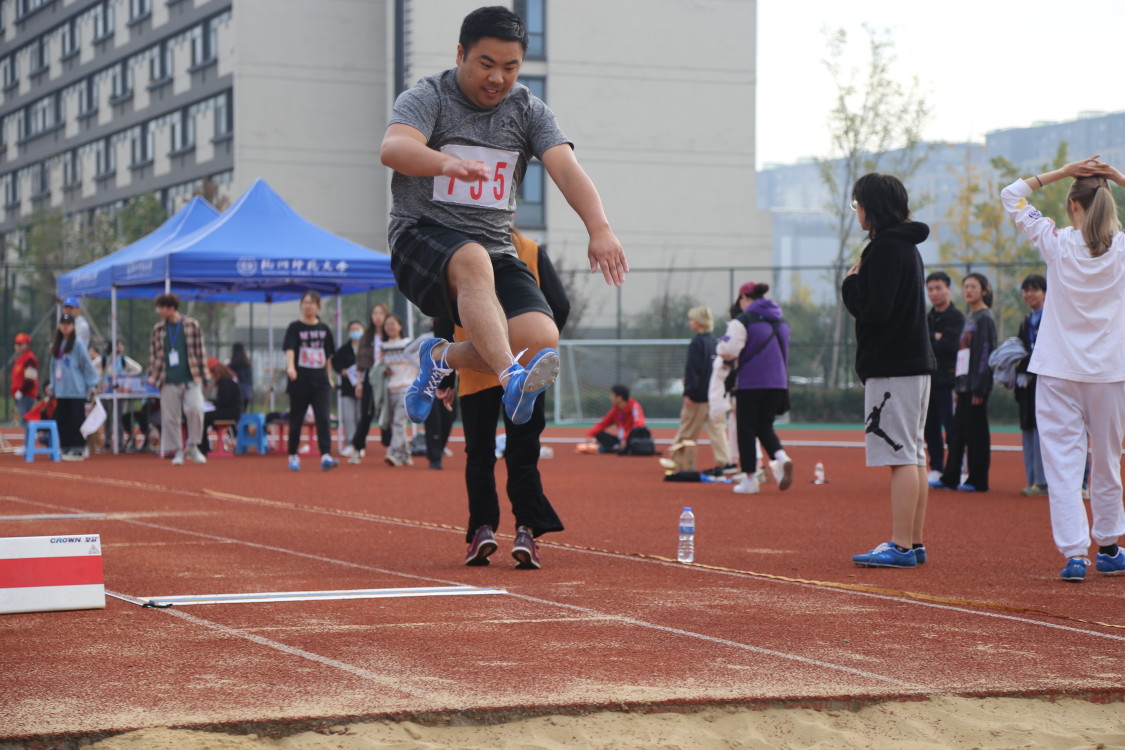 11月7日上午,我校第41届运动会各项赛事于仓前校区东体育场如火如荼地进行。镜头——拉近,锁定到小黄书 三位正在准备跳远比赛的老师。