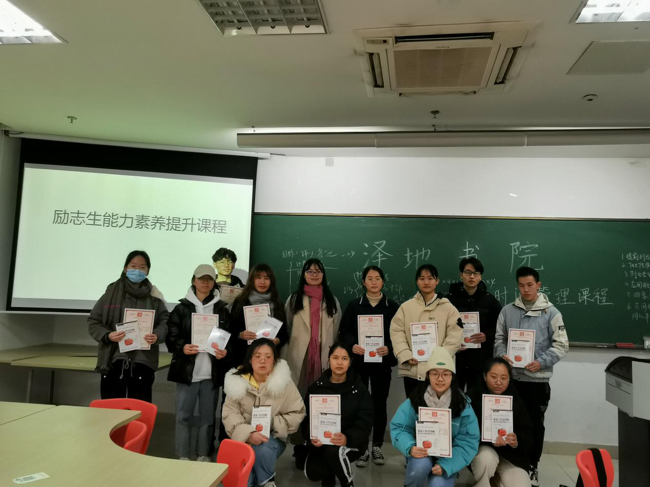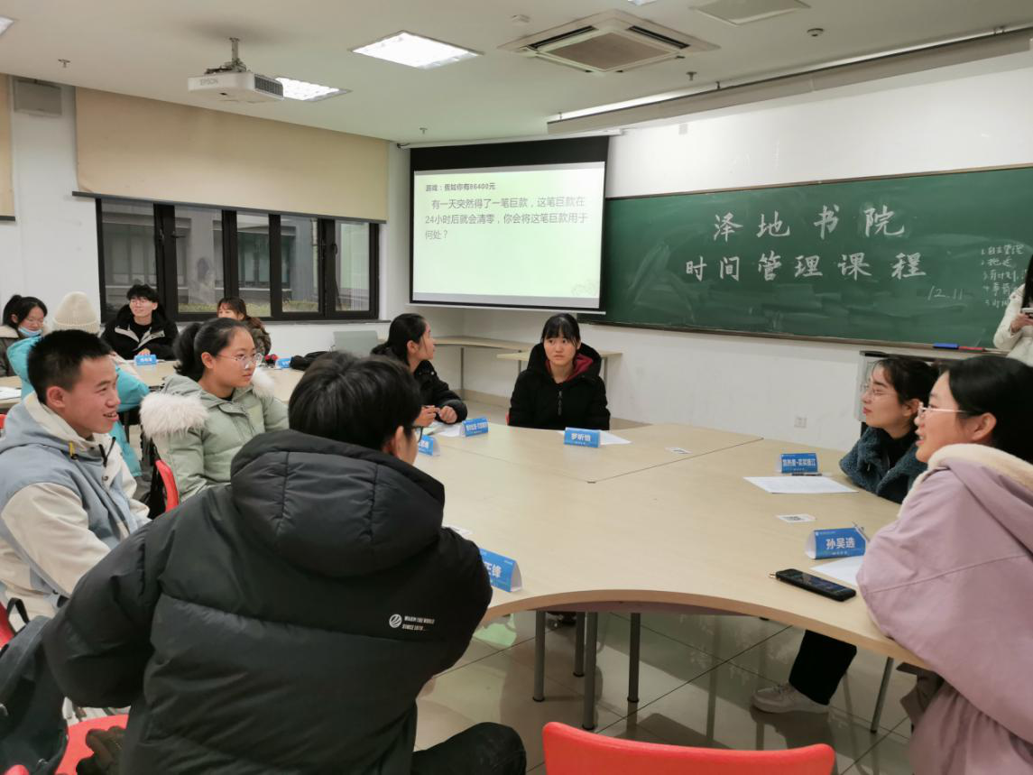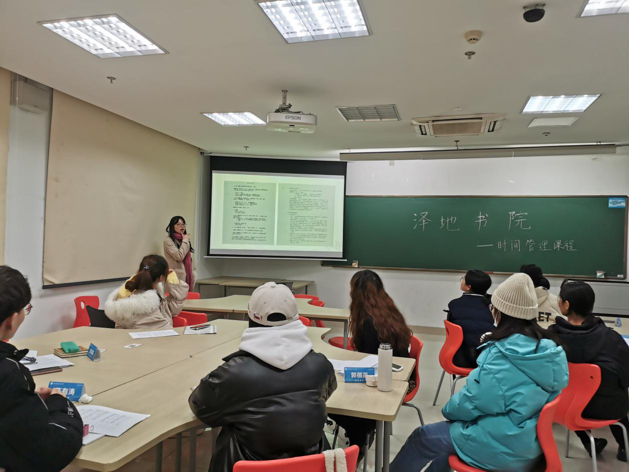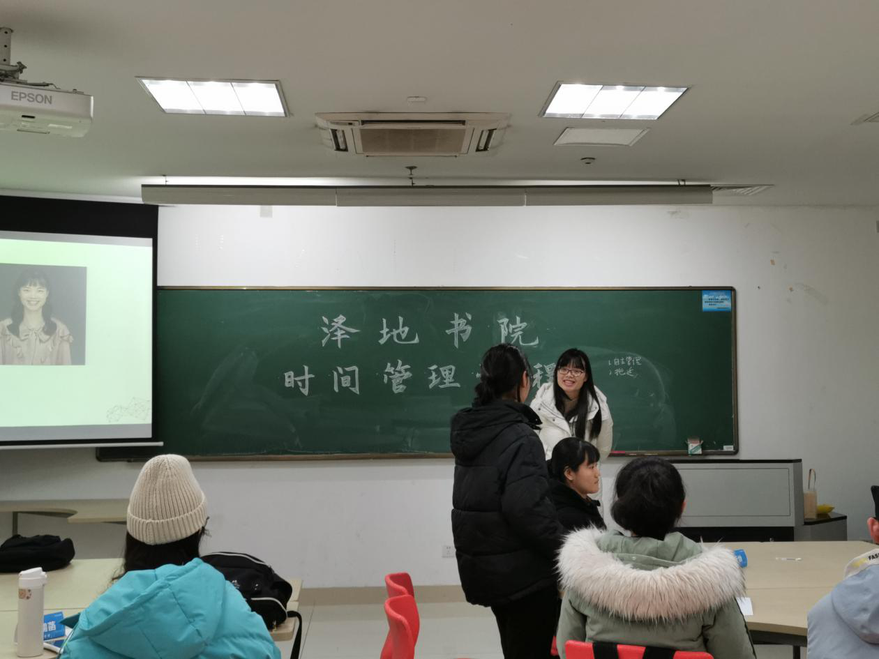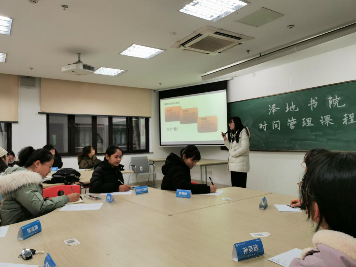 12月18日下午,小黄书 向全校励志生开设的时间管理课程在恕园11-104教室顺利结课。本次课程由陈晓玲主讲,课程从提高时间管理意识、教授时间管理技巧两大方面展开。