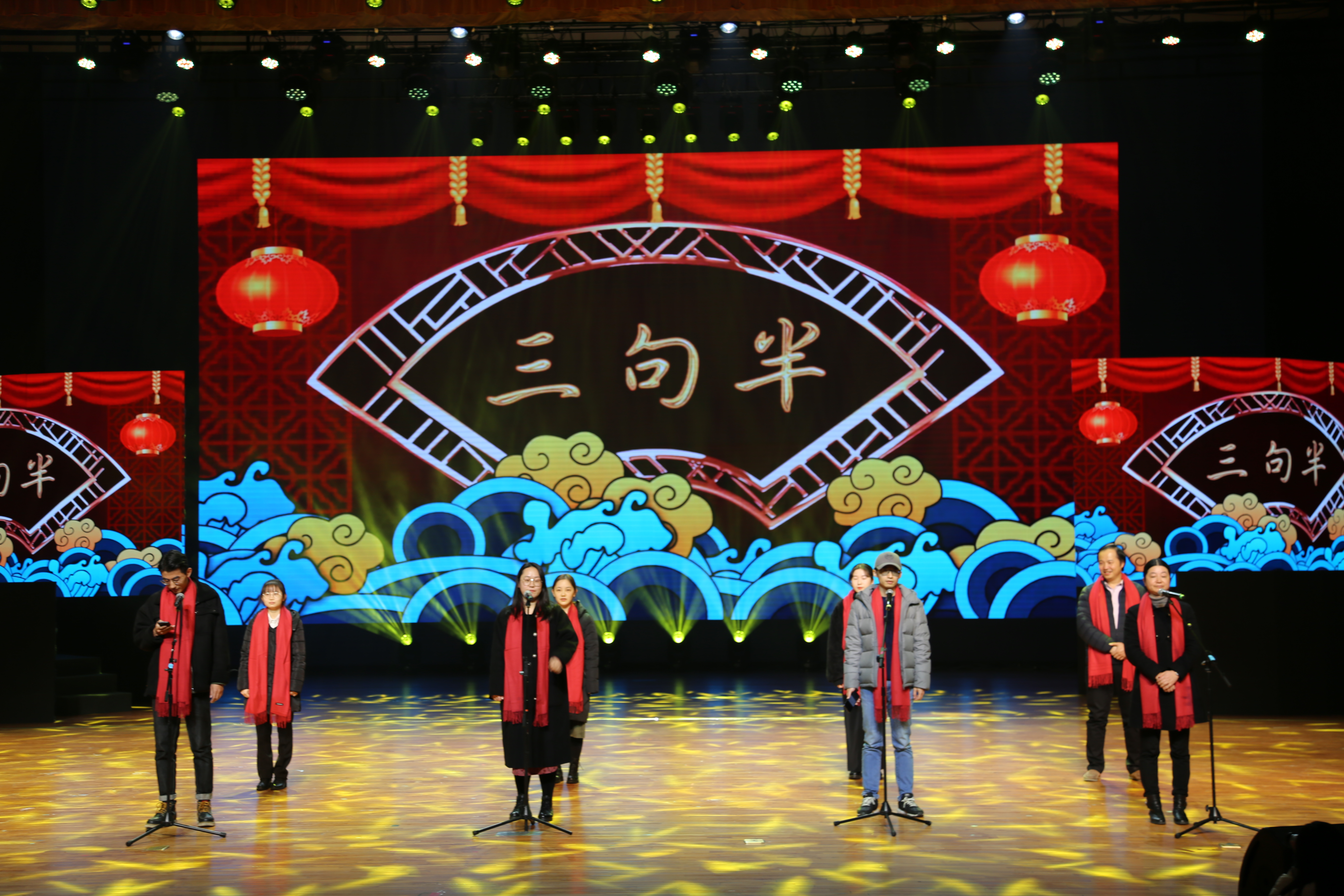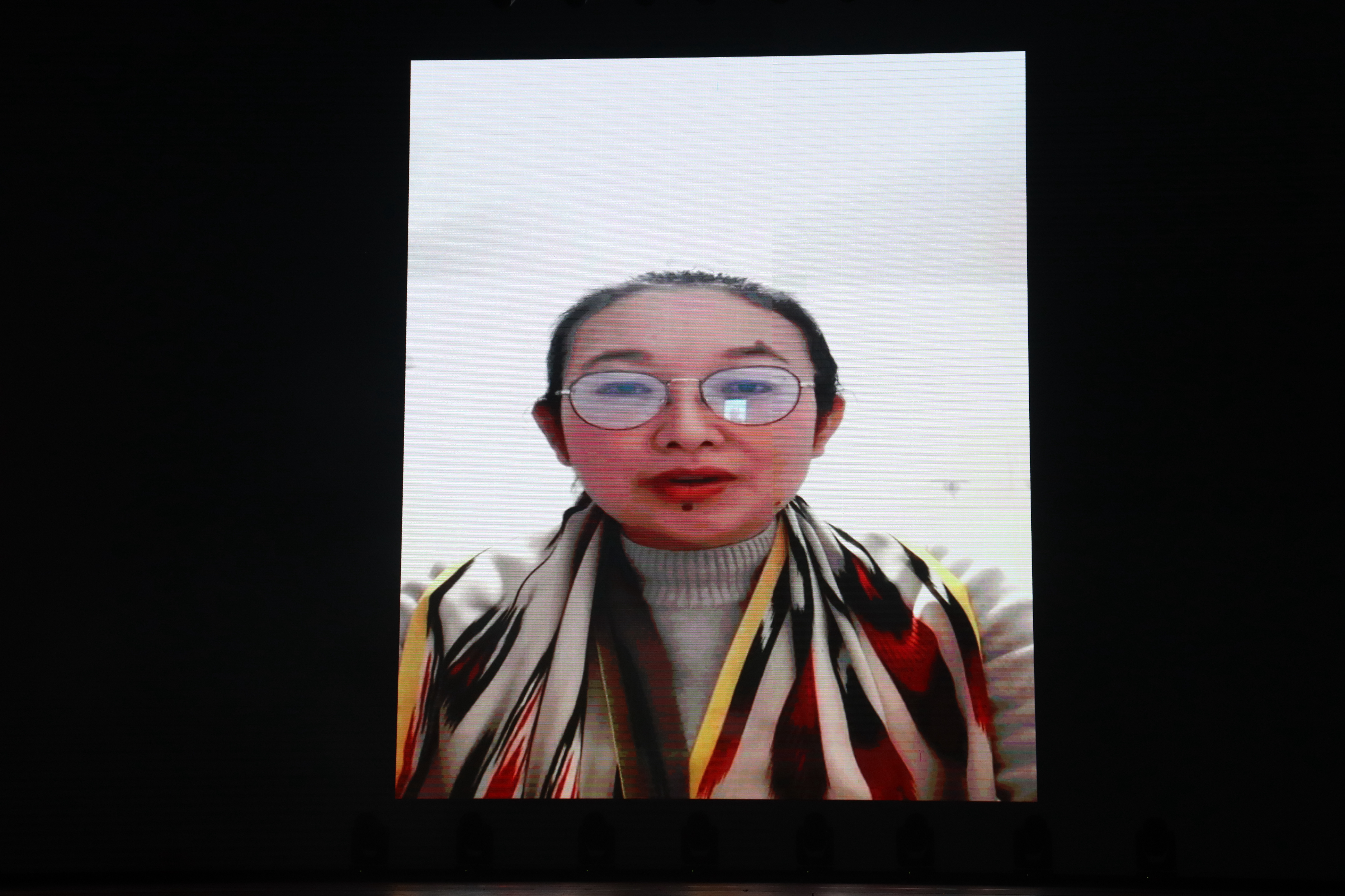 表彰环节后, 师生现场连线小黄书 远赴新疆送教下乡的对外汉语教研室孙炜老师,聆听她亲口讲述自己教育援疆的故事,感人至深。现场还设置了“师生一对一走红毯、师德师风签名承诺”环节。此次大会,“寻梦人文”“绎梦人文”“梦圆人文”多个节目轮番上场,异彩纷呈。《人文Mojito》、二胡演奏《锦鲤抄》、话剧《雷雨》、《三句半》等演出精彩不断、高潮迭起,赢得了现场师生的阵阵掌声。
