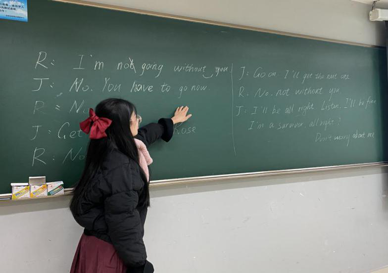 温亮为同学们展示了朗读英语句子的技巧,并与同学们进行“趣味绕口令”小游戏。温亮通过与同学们积极互动的方式,营造了有趣的课堂氛围,帮助少数民族同学巩固英语口语基础。