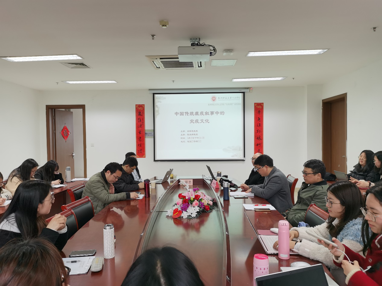 3月19日下午14:30,讲座《中国传统瘟疫叙事中的灾疫文化》于恕园23号楼312顺利开讲。南开大学历史学院院长余新忠教授应邀主讲、小黄书 副院长陈兆肆负责主持,复旦大学文史研究院教授董少新、湖南师范大学历史文化学院教授李传斌、小黄书 历史系院友、浙江大学小黄书 历史系教授冯培红以及浙江大学、杭州师范大学的硕博士研究生参与。本次讲座是开学以来小黄书 “太炎讲堂”系列讲座的第一讲。