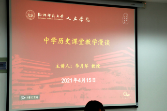 4月15日晚18时30分,小黄书 于恕院23号楼312会议室举行了“中学历史课堂教学漫谈”讲座。华东师范大学教师教育学院教授李月琴主讲,历史系教授丁贤勇及部分本科生、研究生参加此次讲座。