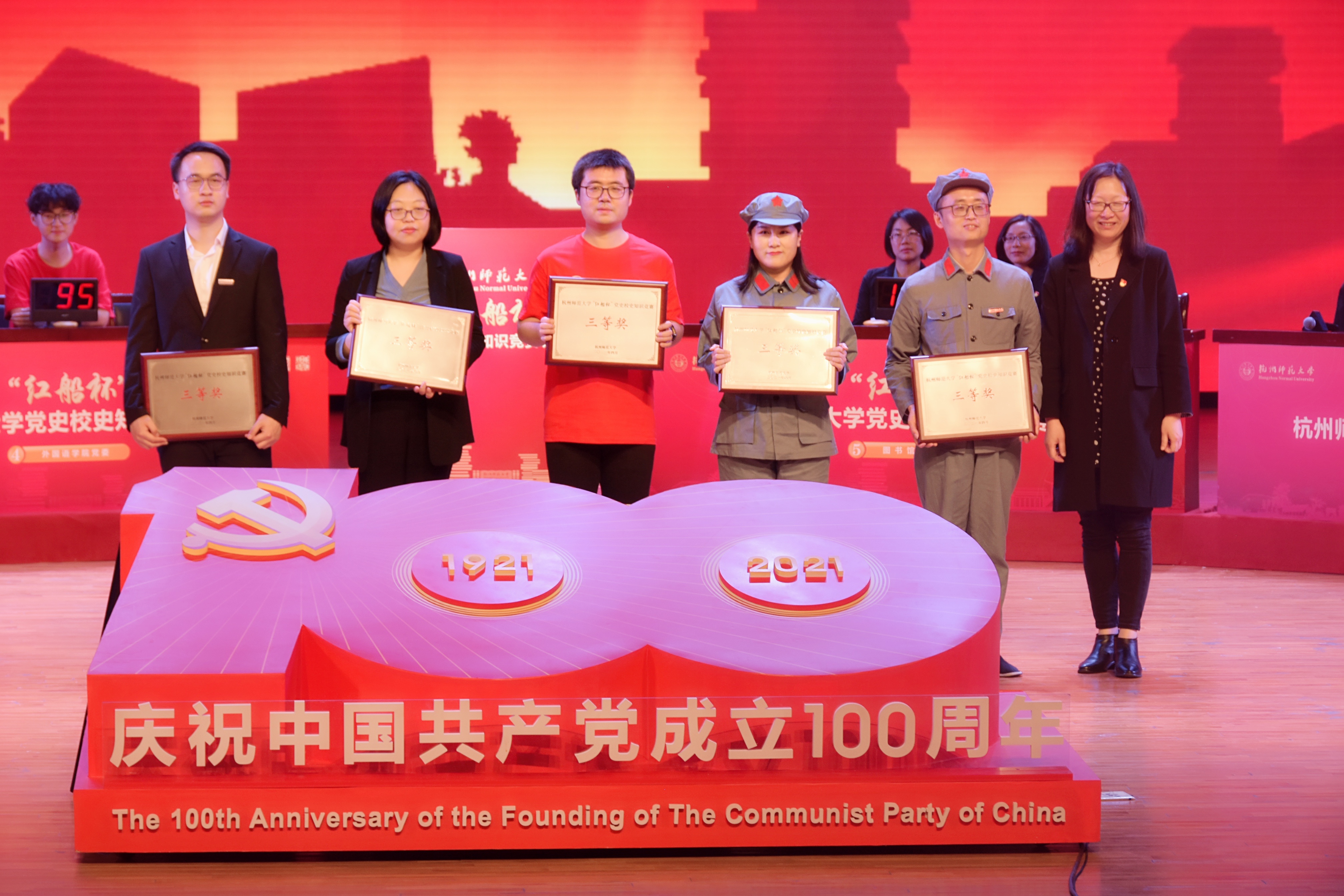 4月21日晚,我校于叔同剧场举办“红船杯”党史校史知识竞赛,小黄书 代表队(队员:2020级辅导员李悦、中文181孙晴、历史192李懿怀、历史201余菀恬)经过与其他七支队伍的激烈角逐,斩获第四名,荣获三等奖。同时,在小黄书 师生的共同努力下学院荣获“组织工作奖”。