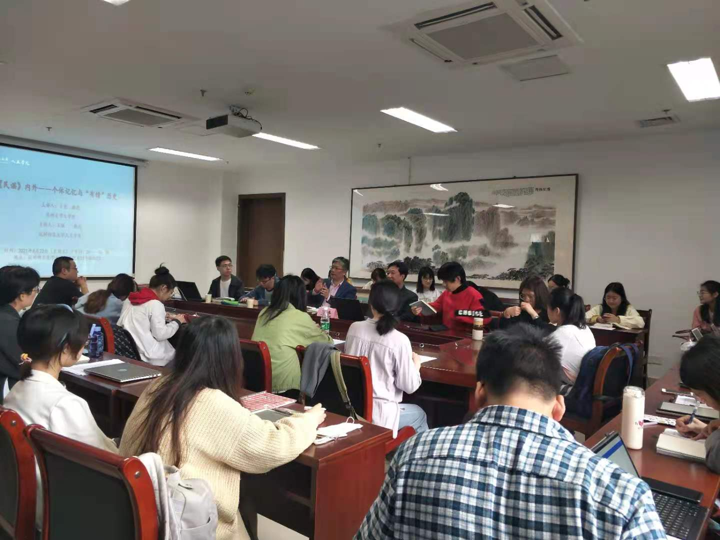 4月23日下午14:00,讲座《<民谣>内外一一个体记忆与“有情”历史》于恕园23号楼312顺利开讲。讲座由苏州大学文学院王尧教授主讲,由小黄书 王侃教授主持。小黄书 中国现当代文学教研室刘杨副教授、吕彦霖博士、李佳贤博士以及小黄书 的本科生、研究生参与。