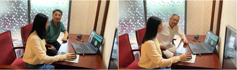 经过一天紧张的录音采样,我们深切地体会到了田野调查的不易。在准备阶段我们需要尽可能周到地考虑好所有可能的问题,预设所有可能发生的情况。但即便如此,在实地调查时,仍出现了不少意想不到的状况。比如,我们准备的声母和韵母都符合实验要求的302个两字组(包括110个备用词组),在一起试读讨论时,发现有的词语他们口语不说,例如“卑鄙”;有的词语6人读得变调不同,例如“特价4 53/5 54”;有的词语6人读得声母和声调不同,例如“白p/b果、祷d/t告、百鸭aʔ5/aʔ2”;称谓词语的连调都与一般两字组不同,例如“弟弟、姑妈”等等,我们只能临时再作调整。录音时发音人冯叔叔的声音特别响亮,我们调低了音量、移远了话筒,但还是“削波”,最后我们只能临时调整了座位,让冯叔叔离电脑稍微远些,才解决了这个问题。