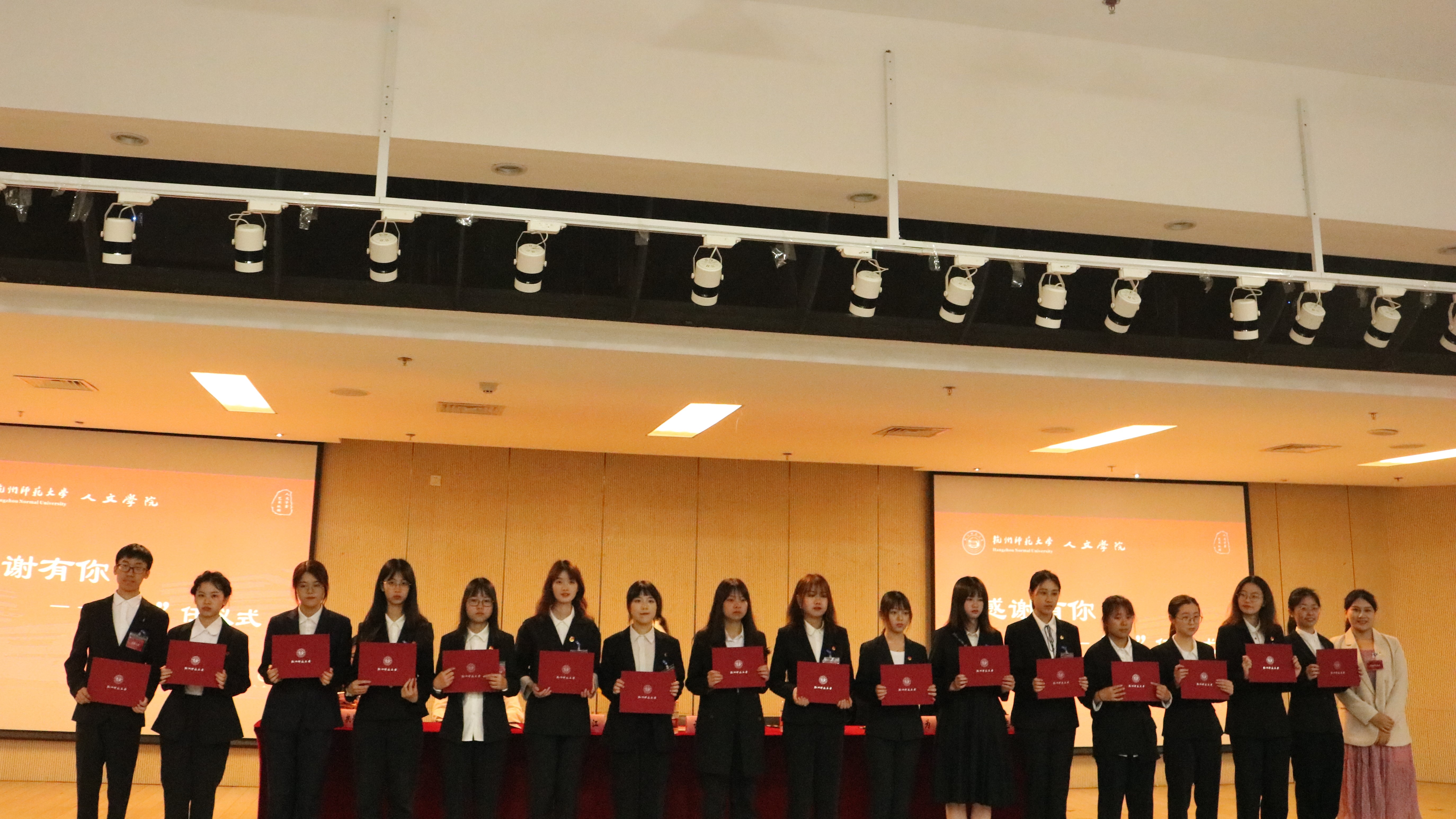本次大会还举办了“感谢有你”卸任仪式,感谢老一届学生会、研究生会成员恪尽职守,全始全终,以及展现人文学子“聚是一团火,散作满天星”团结他人、脚踏实地的星火精神。会上,还对学院2020-2021学年优秀团干部、优秀团员、优秀学生干部、优秀志愿者等进行了表彰。