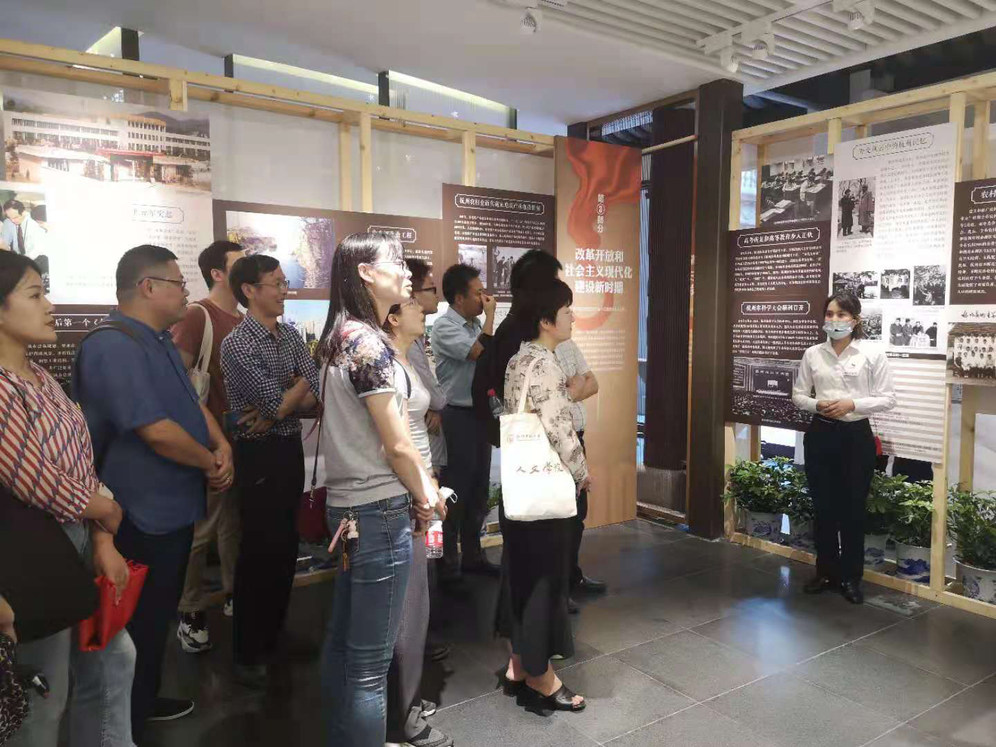 党员们随即前往五四宪法历史资料陈列馆继续参观学习。观展过程中,党员们在对历史场景、珍贵资料的直观感受中深化了对党史和首部宪法诞生历史的认识。各位党员认真倾听这堂鲜活的党史课,还针对学习内容进行交流分享。