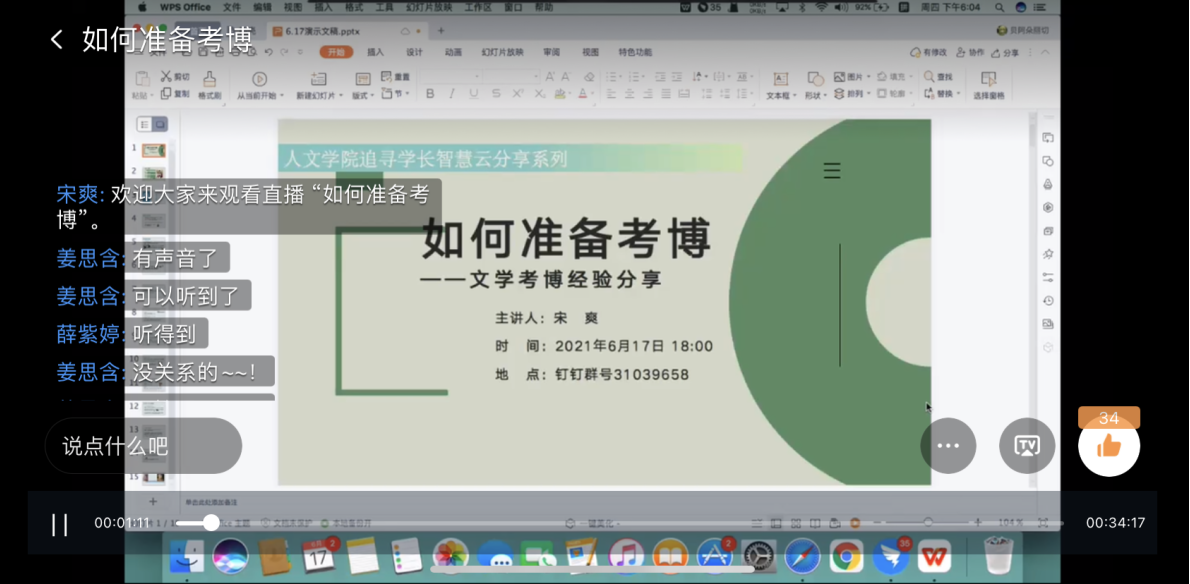 这场分享会干货满满,温暖又有力量,宋爽的分享使学弟学妹对考博的过程、各方面细节都有了更深、更全面的了解,从而有更加明确的未来规划。