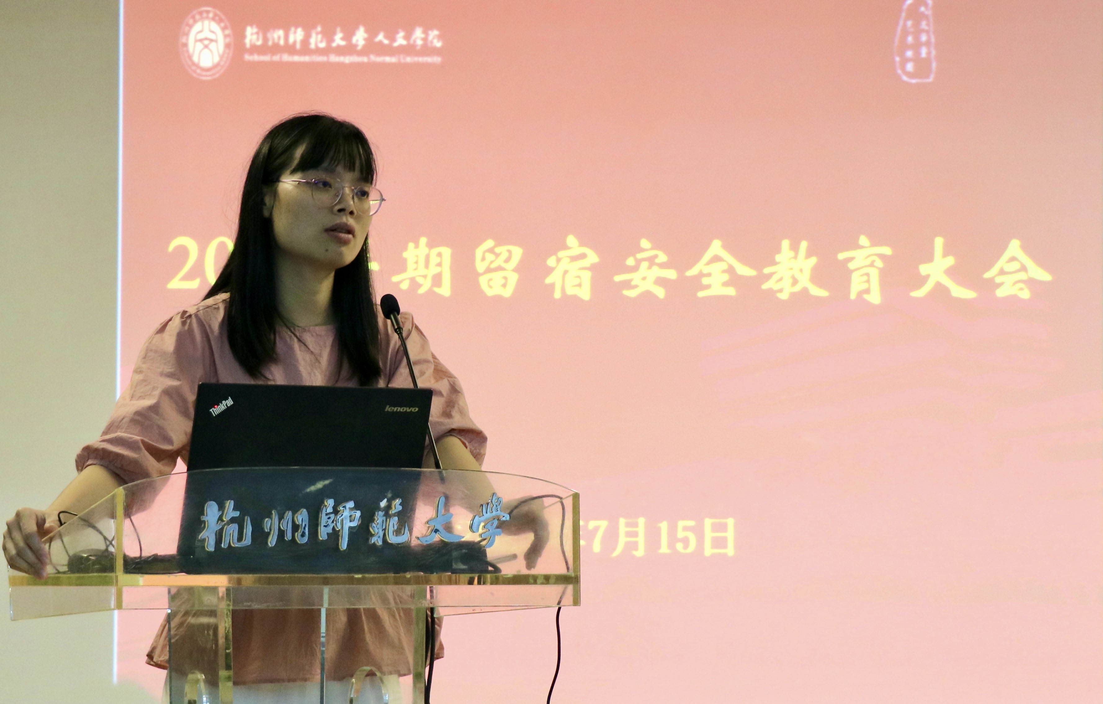 党委副书记钱珊分别从重视班级管理员的工作、维护人身财产安全、做好学习生活规划等三个方面对学生进行安全教育。她提醒同学们提高防骗意识、谨防电信诈骗,同时特别强调留校备考的18级同学们要充分利用留校时间科学拟定、认真落实考研规划,叮嘱外出参加实践活动的同学要注意防暑。留宿学生仔细阅读了暑期留宿安全教育告知书,并在告知书上签字,承诺遵守安全管理规定。
