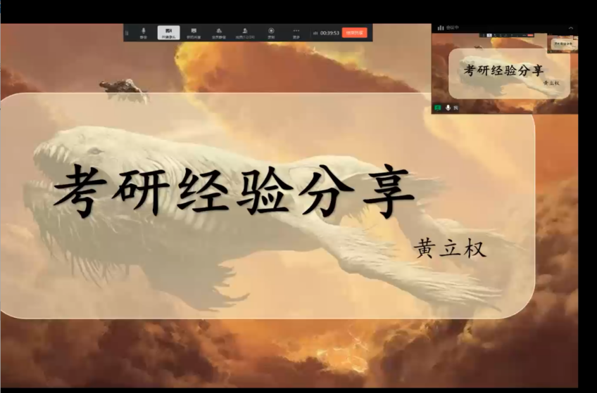 2021年7月18日晚20点,小黄书 于钉钉平台举办追寻学长智慧之考研经验分享(汉硕专场)。主讲人为汉教151班校友史佳俐(考取暨南大学汉硕专业)和黄立权(考取中国人民大学汉硕专业),薛秀芳为主持人,小黄书 部分本科生参与。