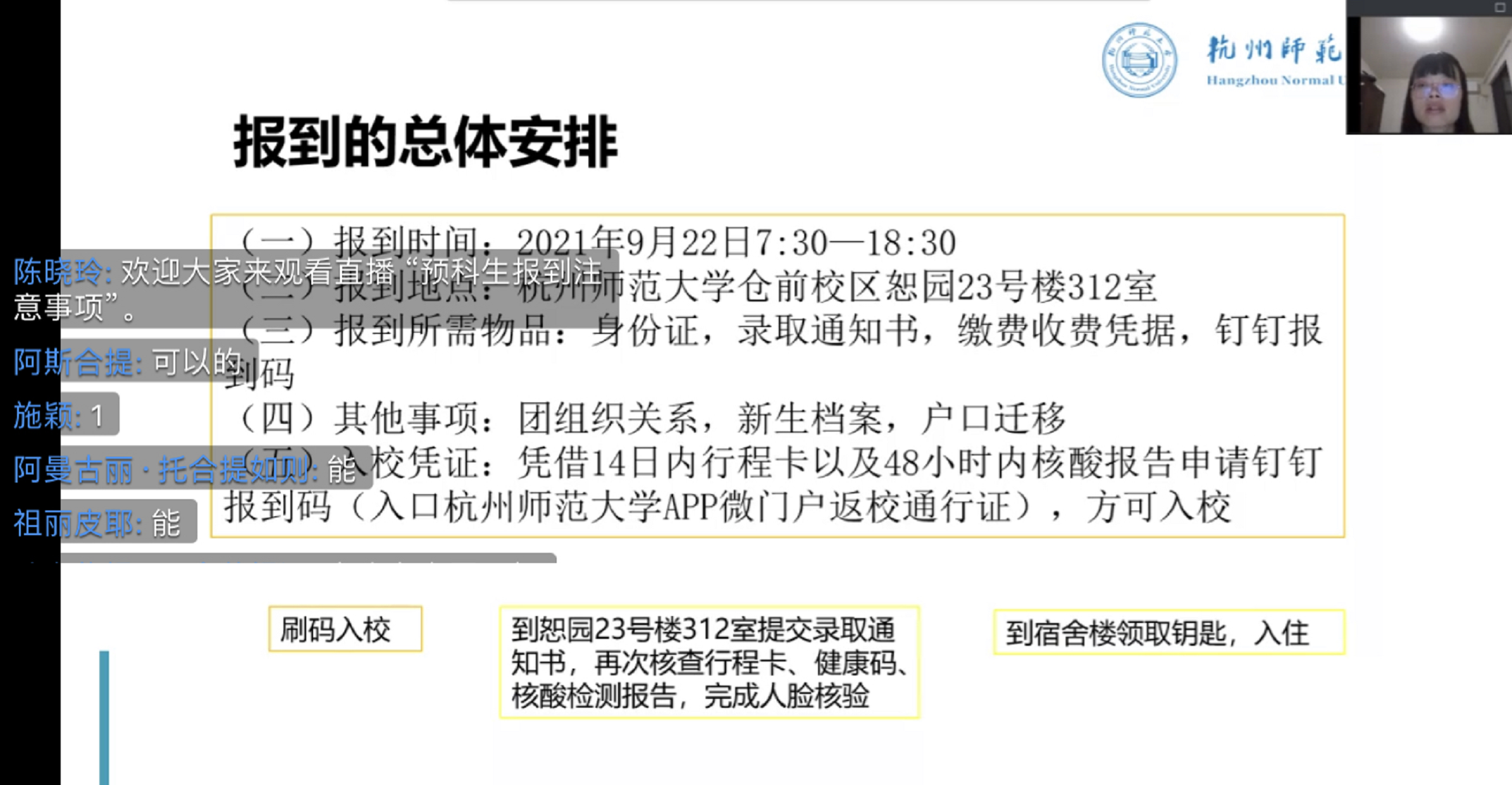 2021年9月20日晚七点,小黄书 21级预科211班报到线上培训会议由小黄书 学工办主任、21级预科班辅导员老师陈晓玲线上召开,预科211班全体学生参加。