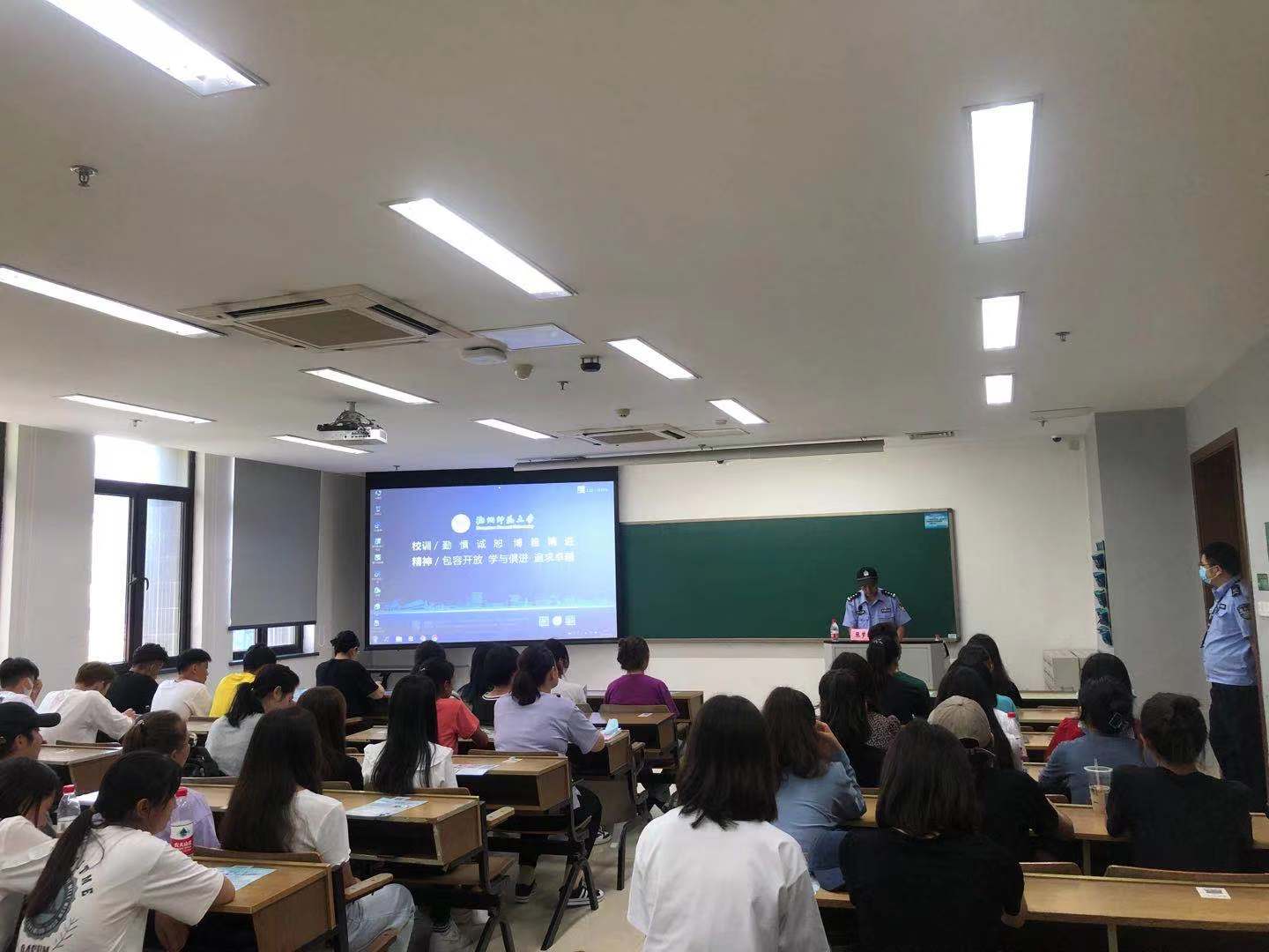 为提高2021级新生防范电信网络诈骗能力,维护学生利益,确保校园安全稳定,9月23日下午1时30分,小黄书 于恕园12号楼305室举行预科生新生防诈骗宣传教育讲座。仓前派出所警官张梦洲以及三位内派老师杨春花、王咏、阿地力·乃买提应邀出席讲座,全体2021级预科生新生参与讲座。讲座由学工办主任陈晓玲主持。