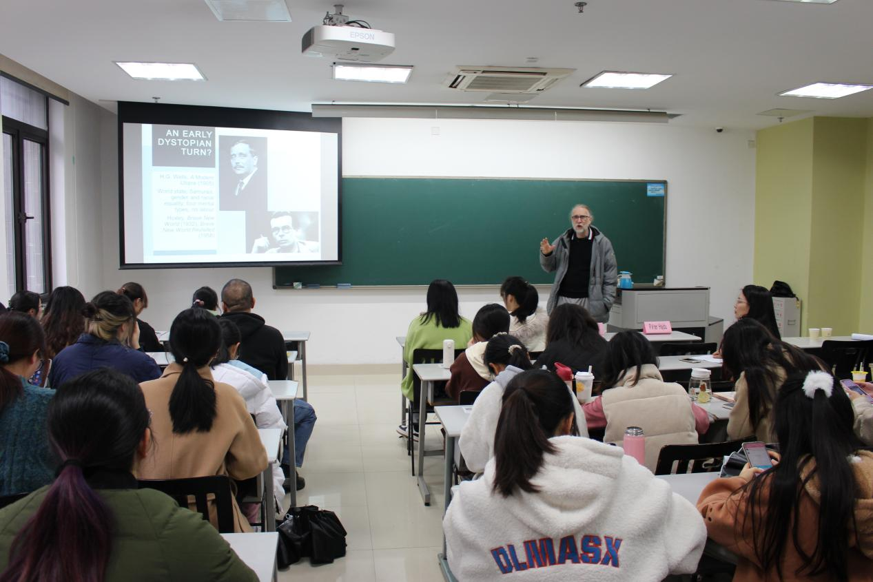 11月18日上午9点,小黄书 “太炎讲堂”系列讲座之“Utopia, Anti-Utopia, Dystopia, Sci-fi.”讲座在恕园33-202召开,匈牙利科学院文学研究所学术顾问,匈牙利佩奇大学教授Péter Hajdu受邀为主讲人,小黄书 詹玲教授为主持人,小黄书 部分教师,研究生与本科生参与讲座。