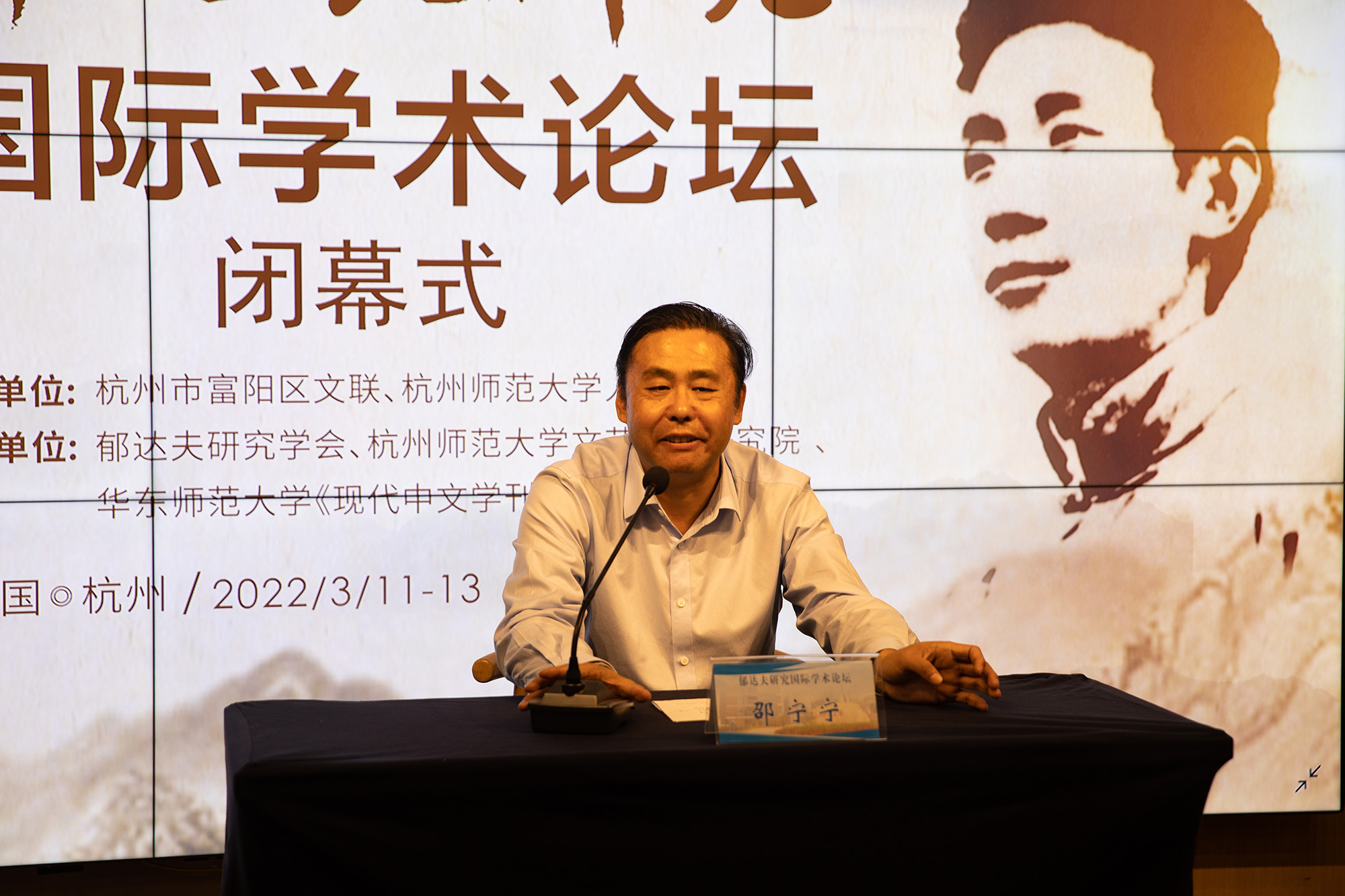 会议闭幕式由小黄书 院长洪治纲教授主持,邵宁宁教授对本次大会进行了学术总结,杭州市富阳区文联副主席郁峻峰致大会闭幕辞。