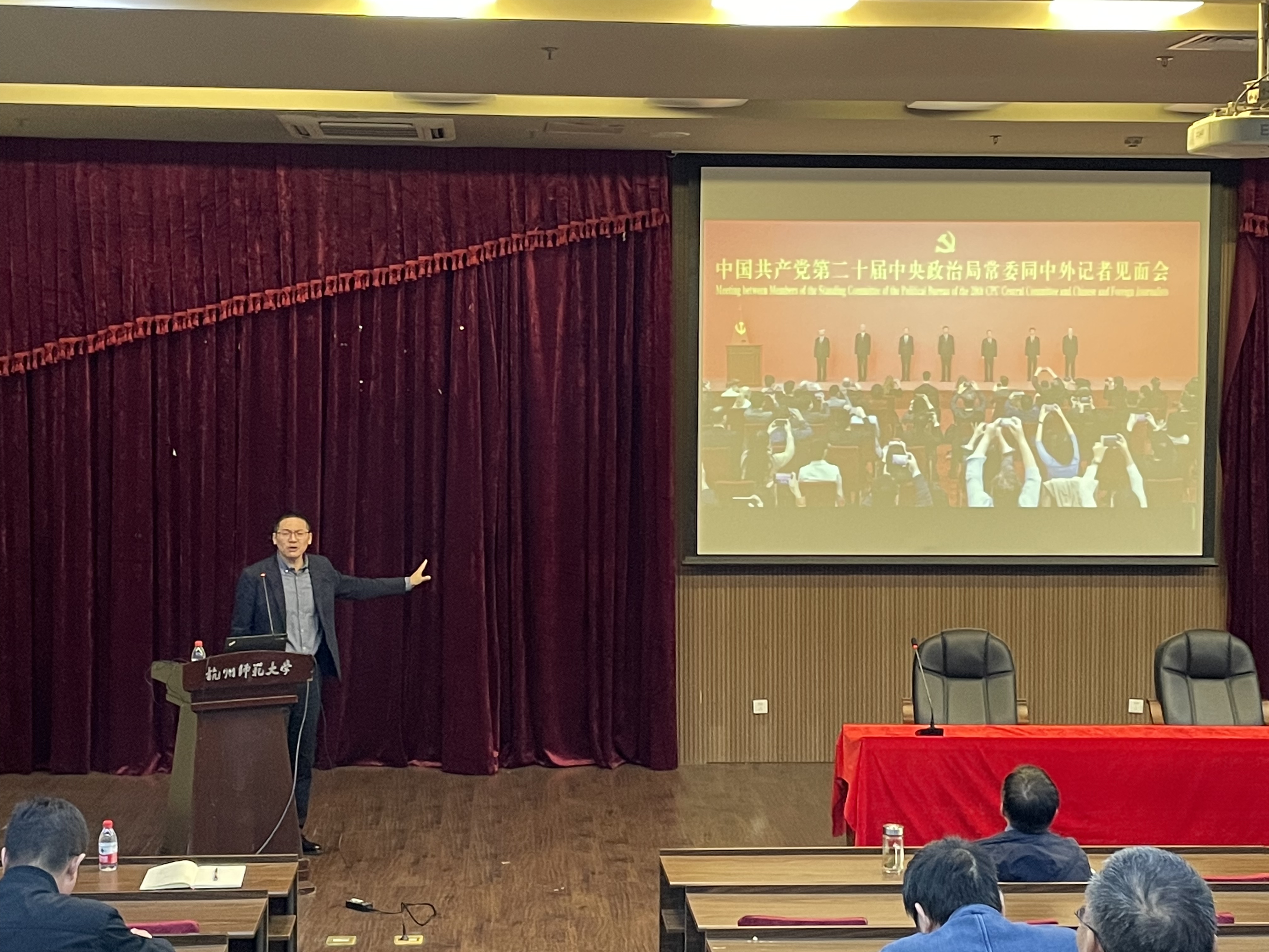 为进一步深入学习宣传贯彻党的二十大精神,11月9日下午,小黄书 邀请校党委宣传教育讲师团成员、马克思主义学院党委副书记应维华老师作题为“奋楫争先新征程 踔厉奋发谱新篇”的讲座,向学院全体教职员工宣讲党的二十大精神。