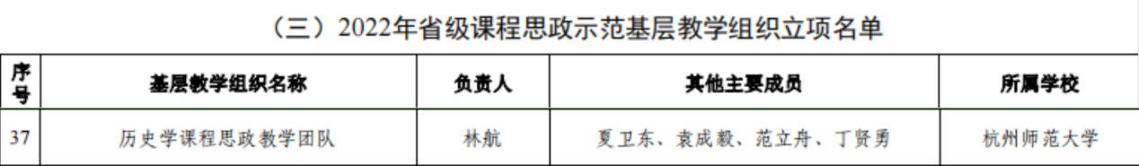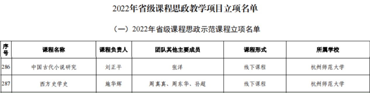 近日,省教育厅公布了2022年省级课程思政教学项目建设立项名单,小黄书 刘正平教授负责的课程《中国古代小说研究》和施华辉博士负责的课程《西方史学史》获2022年省级课程思政示范课程立项,林航教授负责的“历史学课程思政教学团队”获2022年省级课程思政示范基层教学组织立项。