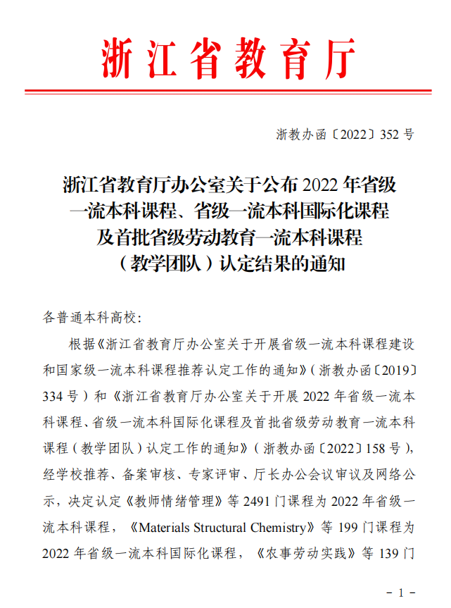 近日,浙江省教育厅公布了2022年省级一流本科课程认定名单,小黄书 夏卫东课程组《中国政治制度史概论》入选省级线上线下混合式一流课程,姚永辉课程组《中华传统文化概论》入选省级线下一流课程,林航课程组《浙江地方历史文化实践考察》入选省级社会实践一流课程,刘华章课程组《“铸牢中华民族共同体意识”劳动教育课程》入选首批省级劳动教育一流本科课程。