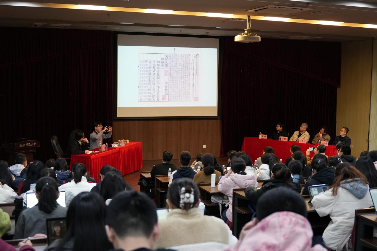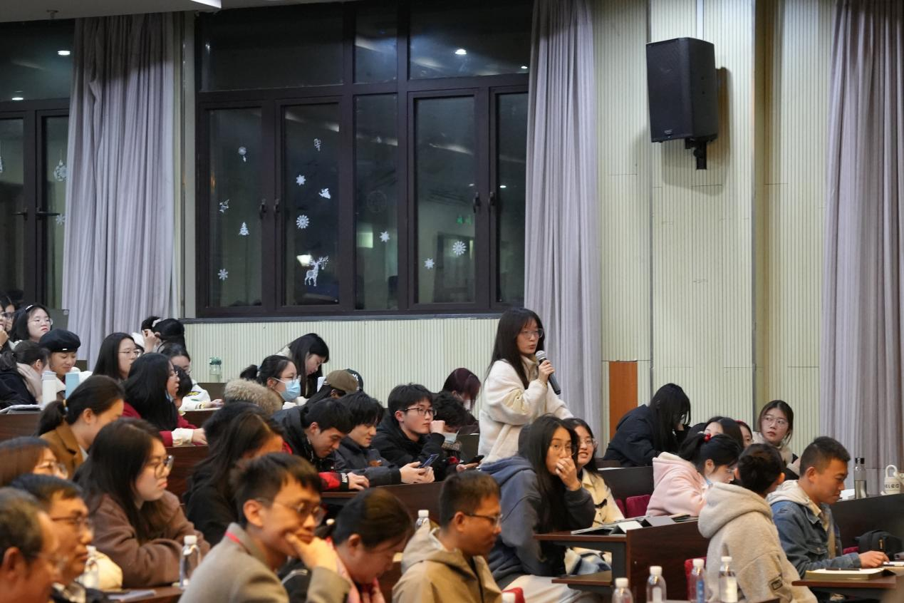 与谈环节,四位与谈人分别针对演讲内容进行或深入或延伸的讨论,并提出在书籍刊刻的历史场景中,刻工行业因种种原因湮没无闻等相关问题。孙显斌老师进一步指出,在“习焉不察”处窥文献堂奥,是在座师生应当学习的治学之径。提问环节,石祥老师就同学们提出的问题进行了解答与讨论,现场气氛热烈。