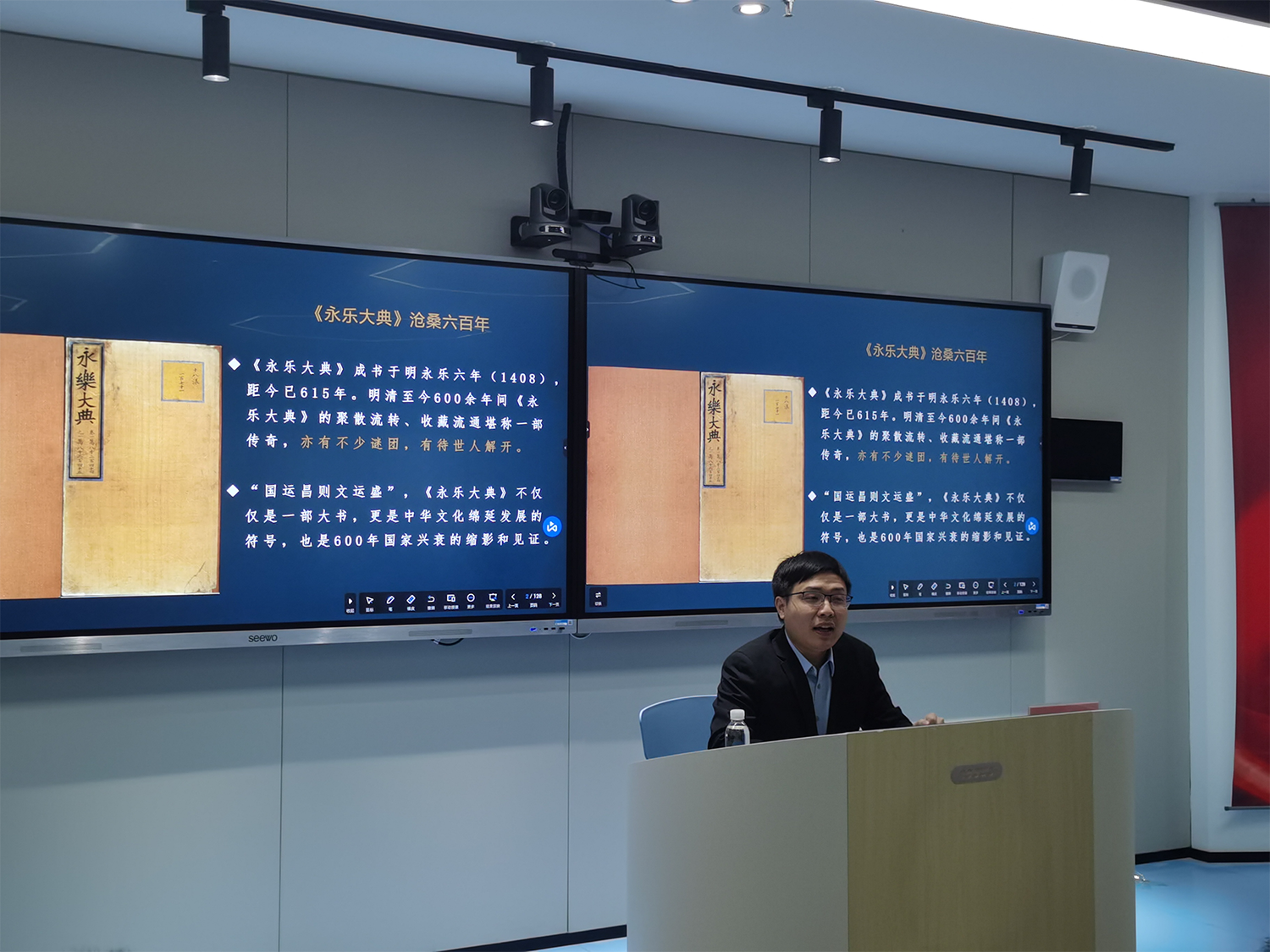 本次讲座在回溯《永乐大典》研究经纬的基础上,探寻《永乐大典》的编修动机、正副本庋藏流散、清末翰林院被焚等一系列历史谜团,并聚焦于《永乐大典》都总裁——“两脚书橱”陈济、嘉靖帝重抄副本史事等相关典型案例,呈现出《永乐大典》聚散流转过程中鲜活的历史细节,具体则从三个方面展开讲述。