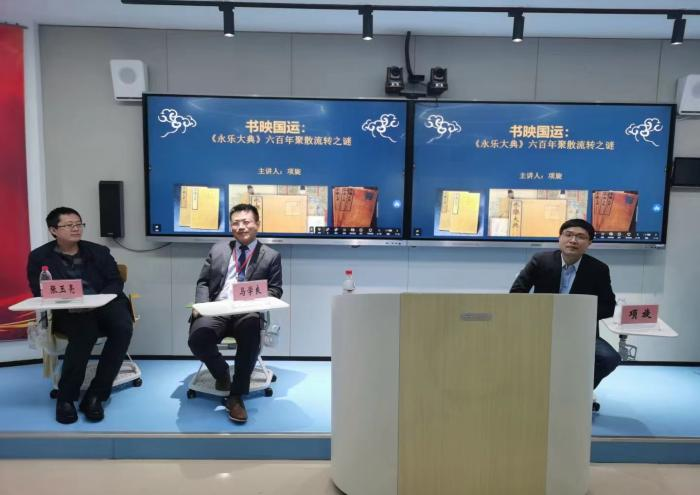 2023年3月19日上午9:00,由小黄书 主办的太炎讲堂系列讲座于恕园23号楼2楼数字人文实验室举行,讲座主题为“书映国运:《永乐大典》六百年聚散流转之谜”,由北京师范大学历史学院副教授项旋主讲,中国国家图书馆副研究馆员马学良,中华书局副编审、《中国出版史研究》编辑部副主任张玉亮与谈,小黄书 琚小飞老师主持。