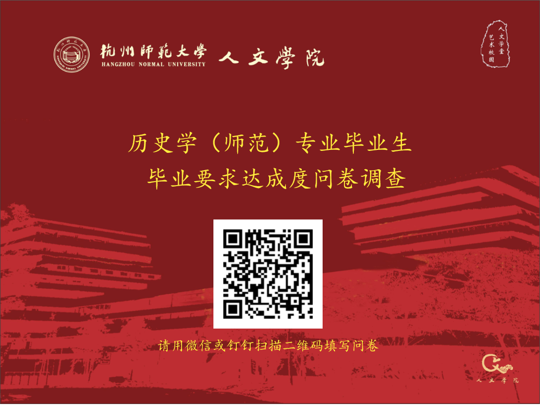 请历史131班、历史141班毕业生用微信或钉钉扫描二维码,在10月中旬前填写完成以下两份问卷;请历史181班、历史191班、历史192班毕业生在10月中旬前填写问卷一(毕业生毕业要求达成度问卷调查),对于您的大力支持与宝贵意见,深表谢意!