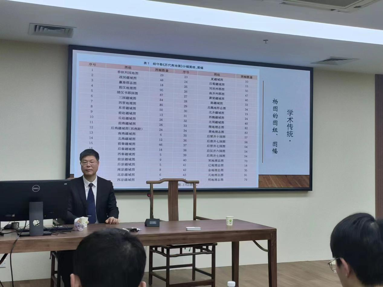 第一部分为历史地图的学术传统。华林甫老师回顾了自西晋至清朝历朝历代的所编制的历史地图(集),其中以清末杨守敬所编《历代舆地图》为历史地图绘制史上的里程碑,在对“杨图”内容的介绍中,华老师还列举了由他一一清点、梳理得出的44个图组、1752图幅,“杨图”内容之完备、考证之细致等均展现了其为谭其骧主编《中国历史地图集》之前我国历史上朝代最为完整、内容最为详细的一套大型历史地图集。在“杨图”之后,又有诸如卢彤《中国历史战争形势全图》、童世亨《历代疆域形势一览图》、苏甲荣《中国地理沿革图》等佳作。同时在学术著作和论文中,也有单幅的历史地图可供研究。华林甫老师认为,清末民国历史地图集编绘的主题以疆域、政区、战争为主,这个传统延绵不绝,一直被1949年以后的历史地图所继承。在对前人所绘历史地图(集)精细研读之余,华林甫老师还劝诫道:“古书要仔细读,学问都在里面。”