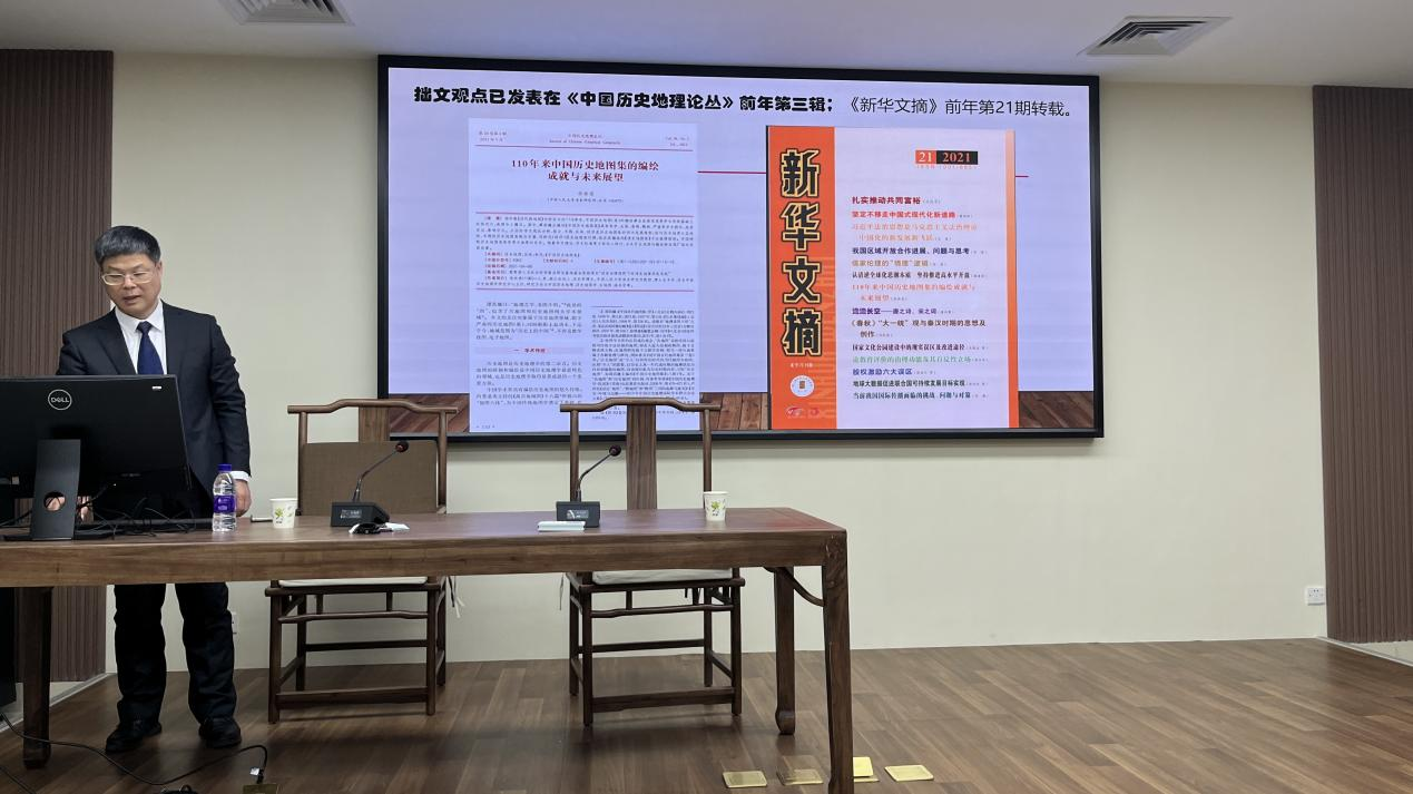 2023年10月22日晚,小黄书 太炎讲堂系列讲座在恕园23号楼314会议室召开,中国人民大学清史研究所教授、博士生导师华林甫老师受邀作题为“112年来中国历史地图(集)的编绘成就与未来展望”的报告,历史系范立舟教授担任主持人。小黄书 副院长刘正平教授、小黄书 副院长林航教授、历史系陈兆肆教授、琚小飞副教授参会与谈。众多师生齐聚一堂,共同聆听了这场学术盛宴。