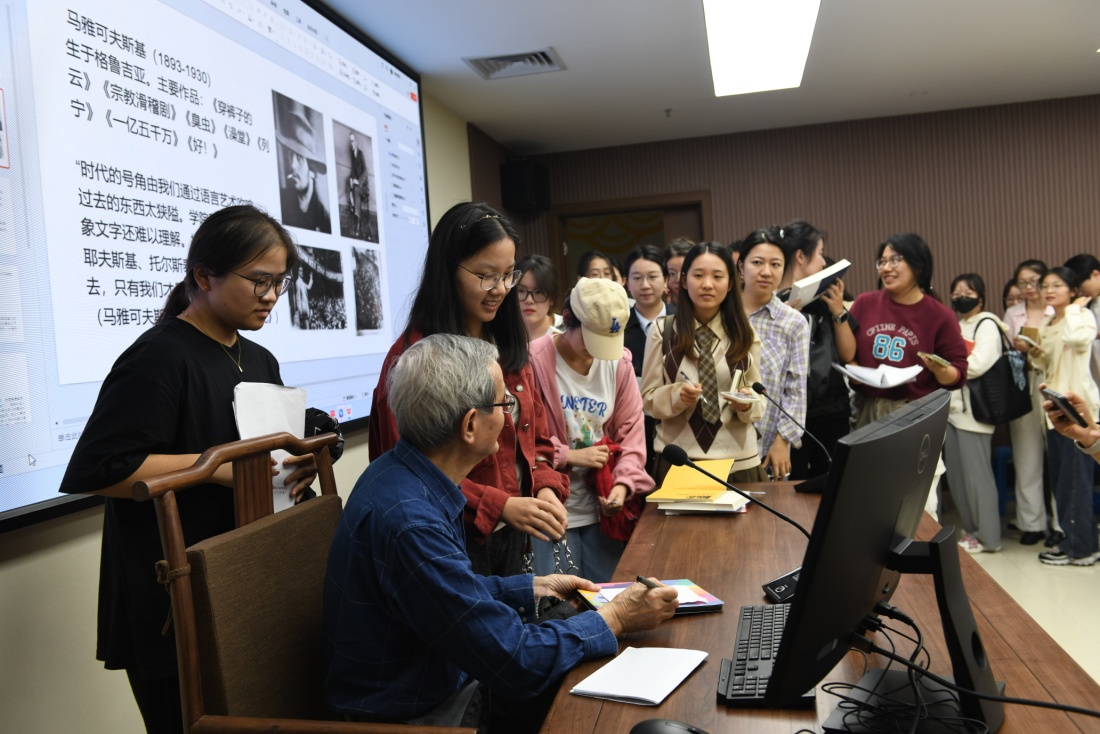 讲座从晚上6点半开始,持续到9点10分,洪子诚教授始终思路清晰,娓娓道来,在场师生无不被洪子诚教授精深的学养和真诚的态度所折服。讲座结束后,洪子诚教授又不辞辛劳,为学生签名,与学生合照。在场师生纷纷表示本次讲座十分精彩,场面热烈温馨,令人终身难忘。