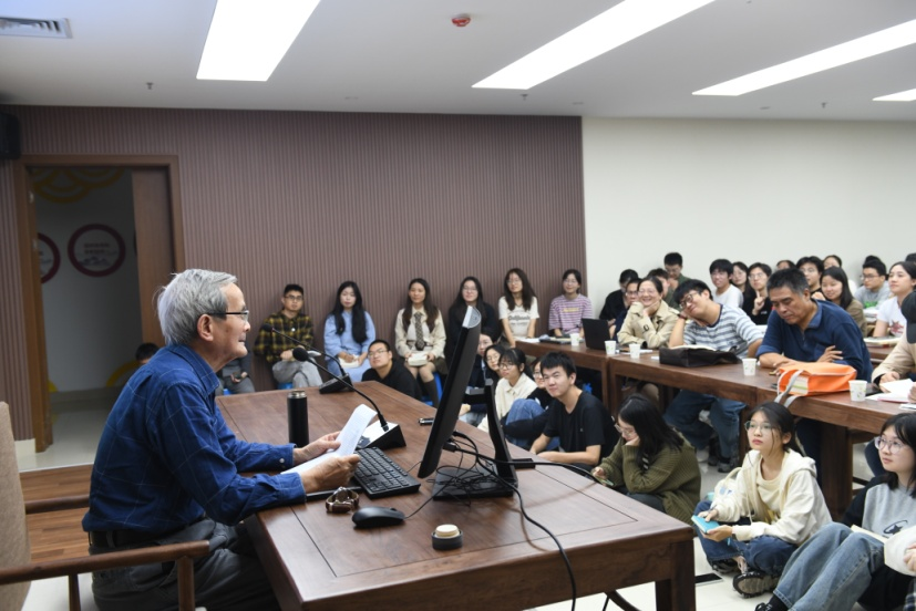 讲座开始前,斯炎伟教授深情回忆了2019年洪子诚教授莅临杭州师范大学晓风书屋为同学们讲座的情景。四年之后,84岁高龄的洪子诚教授不顾舟车劳顿来到小黄书
