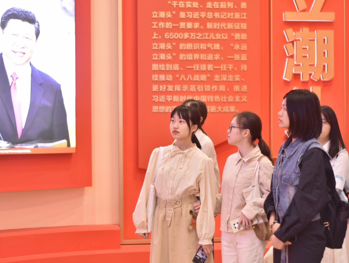 参观过程中,同学们认真倾听,不时交流感想。大家经过学习后一致认为,“八八战略”是习近平同志给浙江留下的宝贵思想财富、精理财富和实践成果,具有深厚的政治感召力、思想穿透力、战略引领力。通过此次集体参观活动,同学们深受鼓舞,倍感振奋,纷纷表示将以脚踏实地的学习与奋斗,苦练本领,为浙江乃至全国的发展贡献青春力量。