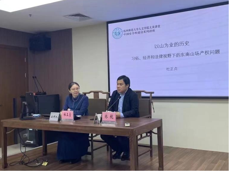 2023年12月12日晚6时,小黄书 太炎讲堂中国史学科建设系列讲座在恕园23号楼314会议室召开。浙江大学历史学系博士生导师杜正贞教授主讲,题目为《以山为业的历史:习俗、经济和法律视野下的东南山场产权问题》。小黄书 历史学系林航教授担任讲座主持人,历史学系陈兆肆教授、王才友教授、陈明华副教授、蔡丹妮老师等一同出席。一众同学们也踊跃参与讲座,浓浓的学术热情温暖了冬季的会议室。