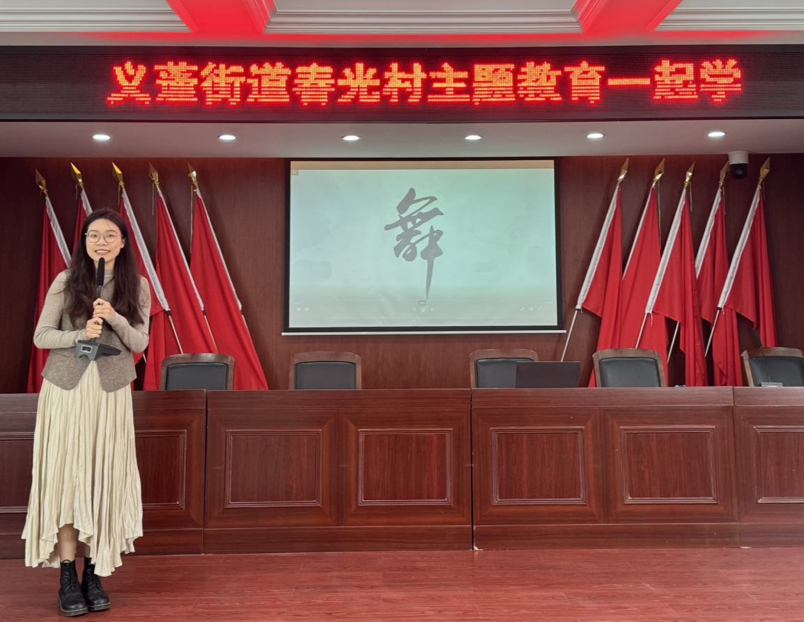 为深入学习贯彻习近平新时代中国特色社会主义思想,弘扬中华优秀传统文化和浙江特色文化,进一步坚定文化自信和提升党组织的凝聚力和战斗力,深化校地协作,杭州师范大学音乐学院团委副书记胡铭倪和小黄书 学生周凌滢于12月15日赴钱塘区义蓬街道春光村为当地的党员做党课宣讲。