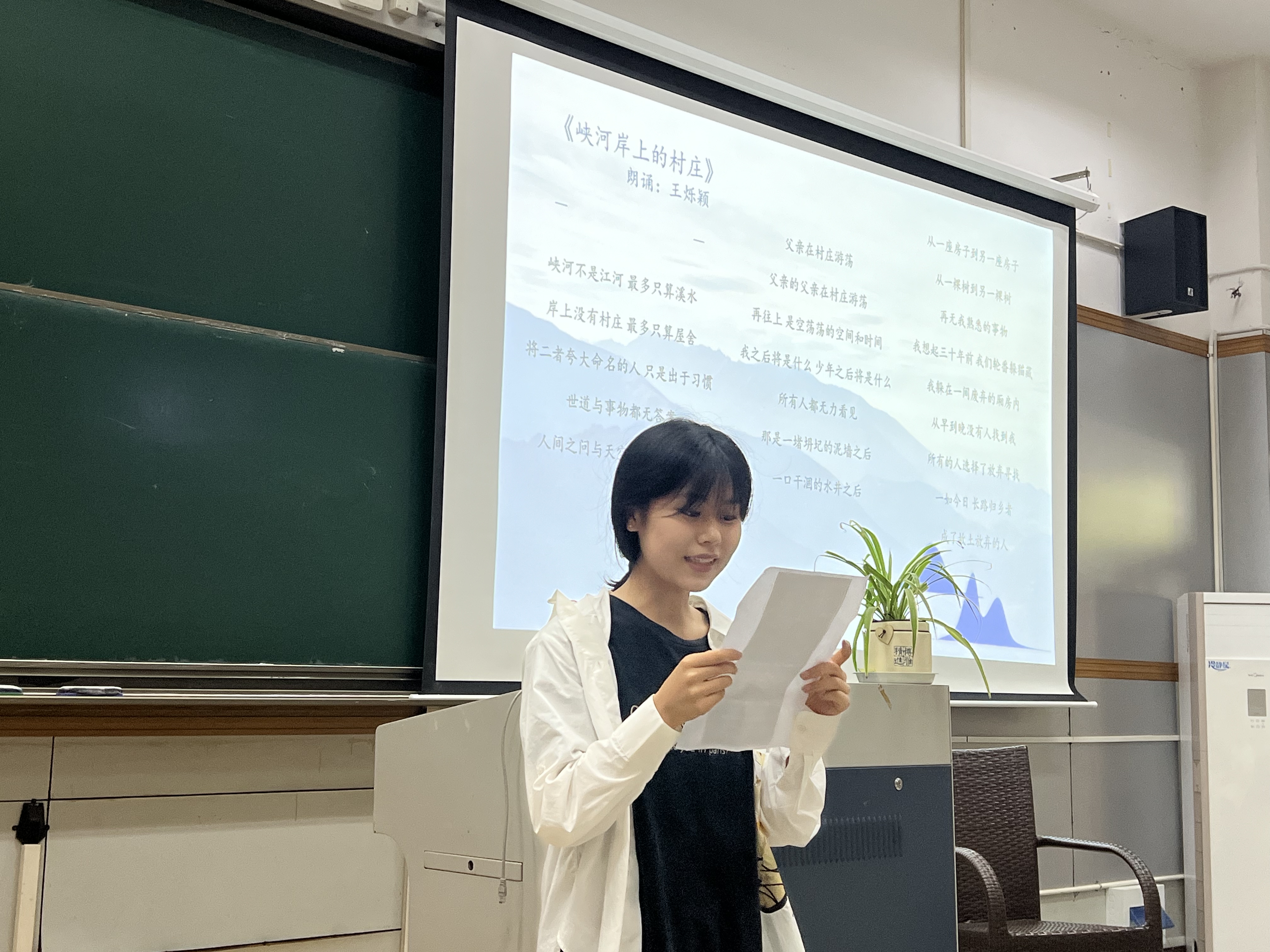 讲座以纪录片《我的诗篇》开场,用真实的影像介绍了矿工诗人陈年喜的矿上生活与文学创作。随后,三名来自小黄书 的中文系学生,深情朗诵了陈年喜老师的诗歌作品。来自中文232班的王烁颖同学朗诵了《峡河岸上的村庄》;来自中文232班的陈序、潘毅同学合作朗诵了陈年喜老师的经典作品《炸裂志》。